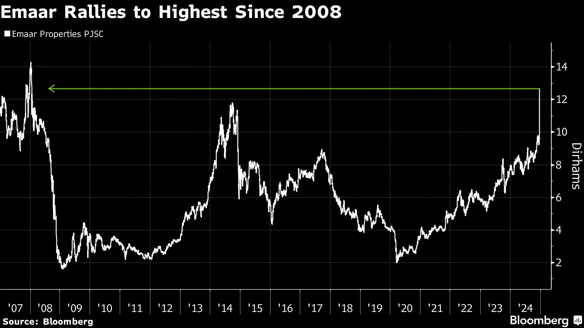 迪拜房地产巨头Emaar的股票攀升至2008年以来的最高点 - 彭博社