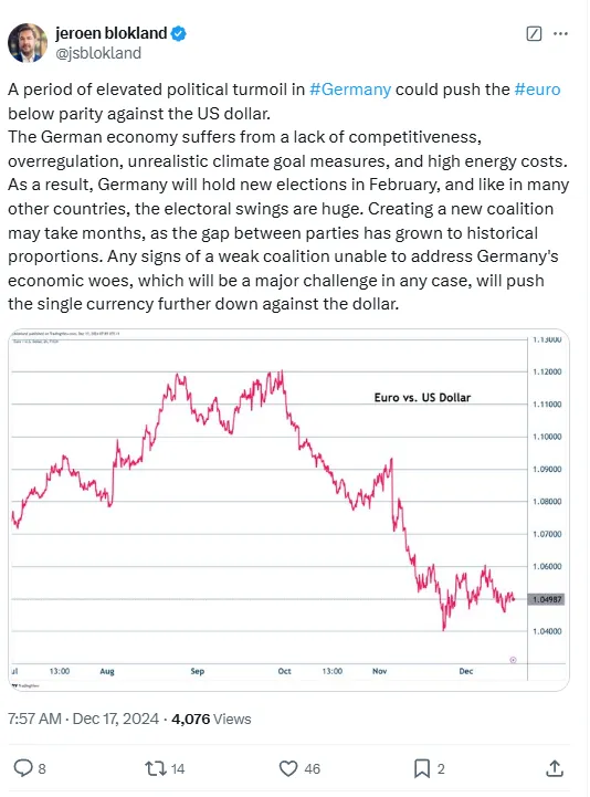 - 加拿大在弗里兰辞职后陷入危机,因为她和特鲁多在应对特朗普重返美国权力的预算反应上产生了分歧