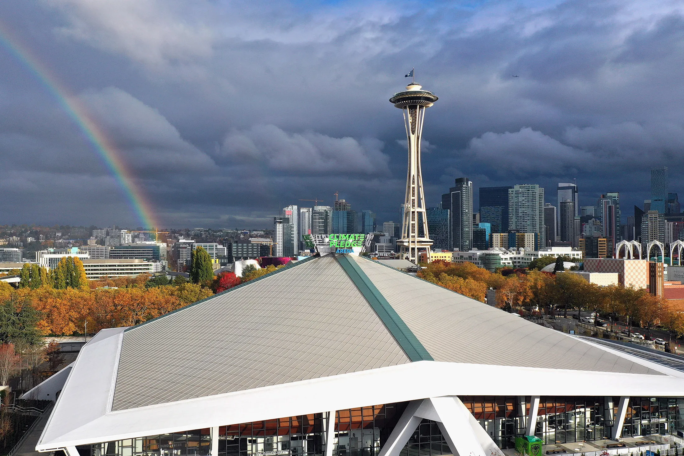 华盛顿州西雅图的气候承诺竞技场。摄影师:布鲁斯·贝内特/盖蒂图片社许多未知因素仍然存在。快速发展的城市,包括纳什维尔、墨西哥城和温哥华——像西雅图一样,都是被早期特许经营权遗弃的太平洋沿岸科技中心——也将是新球队的理想家园。