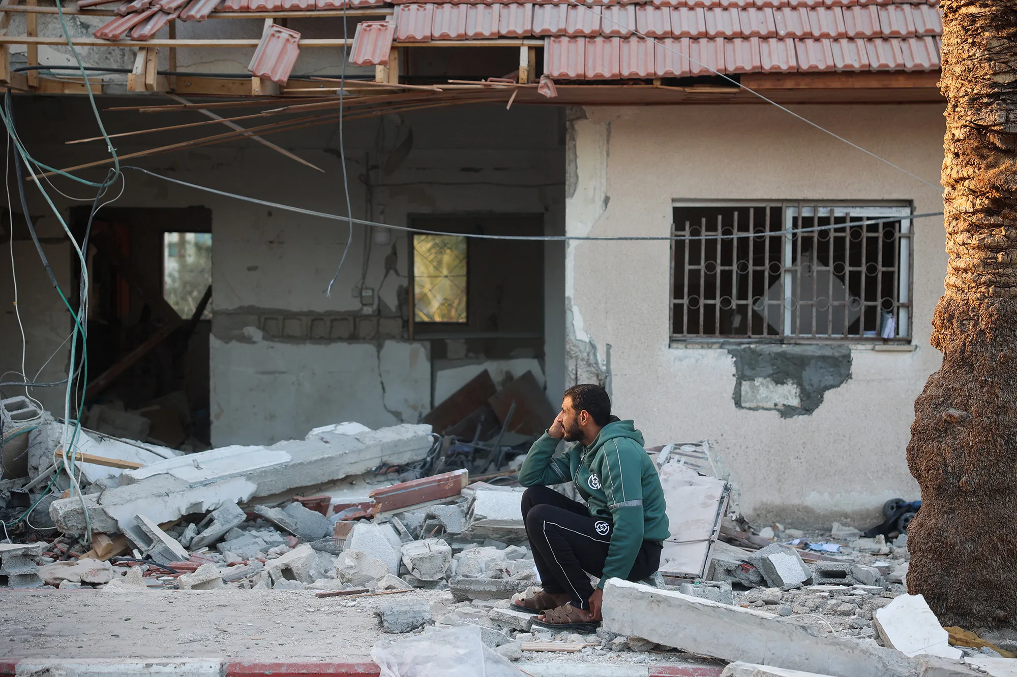 一名居民坐在加沙德尔巴拉赫一栋建筑物的废墟旁,经过以色列的袭击,时间是12月14日。摄影师:Eyad Baba/法新社/盖蒂图片社以色列官员表示,加沙的停火是比以往任何时候都更现实的可能性,这表明释放人质和增加对被围困地区的援助的期待已久的协议可能即将达成。