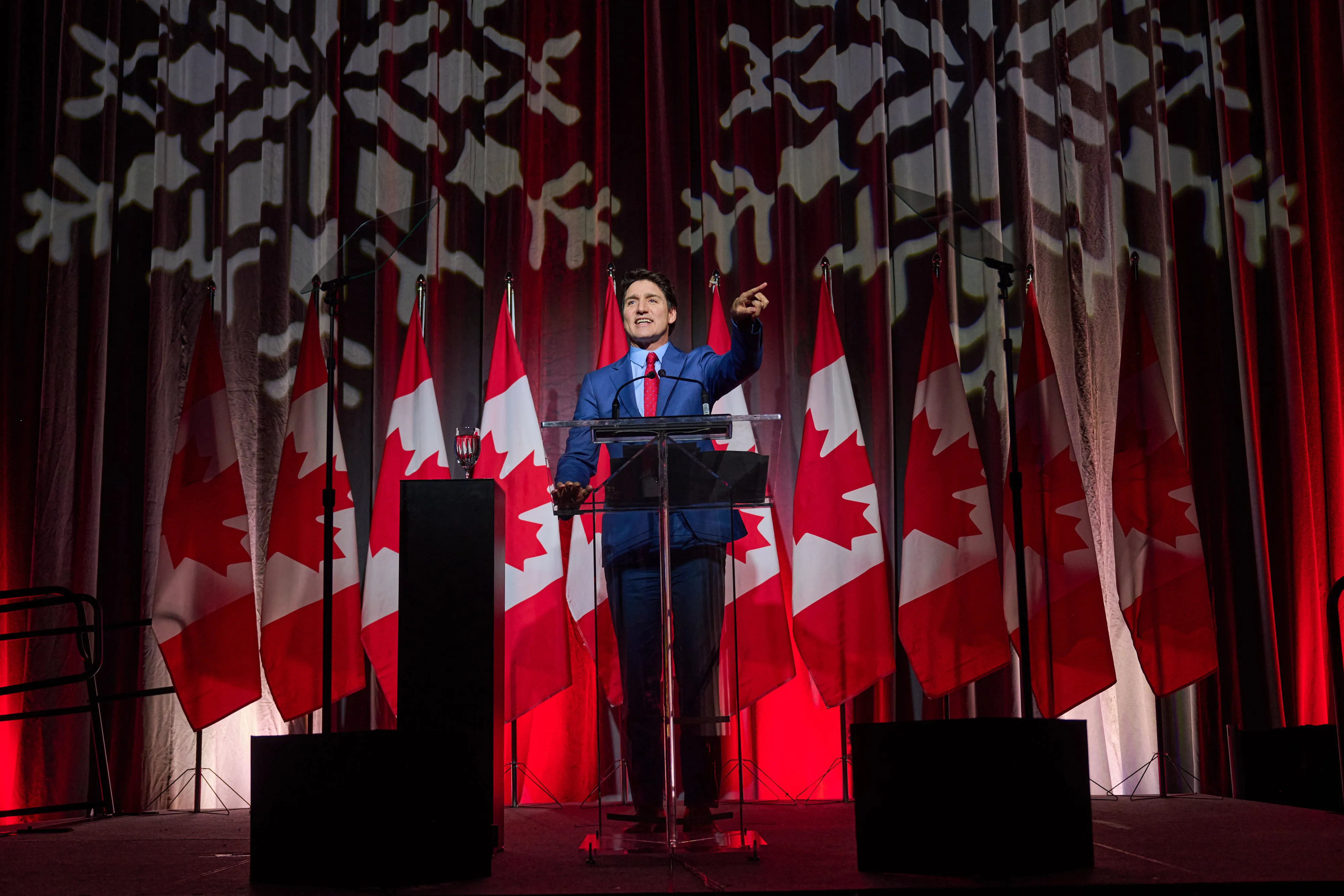 贾斯廷·特鲁多在周二于渥太华举行的自由党立法者及其工作人员的节日聚会上发言。