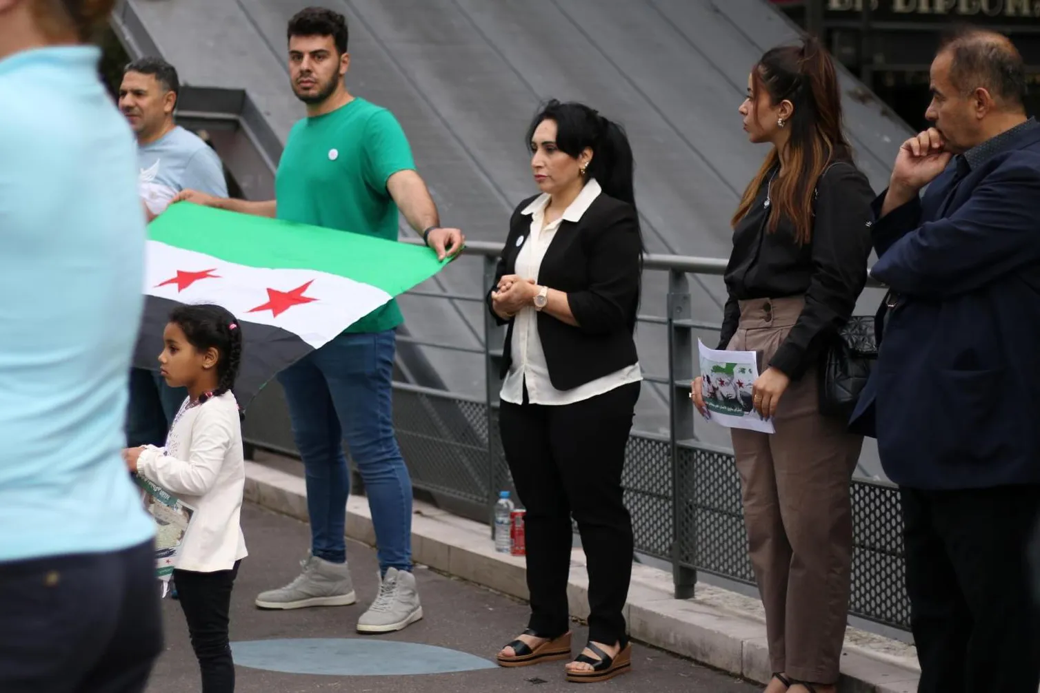 法腾·拉马丹,右中,去年在法国鲁昂抗议阿萨德政权时的情景,她现在居住在那里。来源:法腾·拉马丹当视频中的男人从叙利亚打电话告诉她,他并不是她和她的母亲及姐妹们认为的那个人时,她女儿的兴奋感瞬间破灭。随着叛军占领大马士革,人们再次燃起了一丝希望,涌向 臭名昭著的塞德纳亚监狱,位于首都北部,寻找他们的亲人。