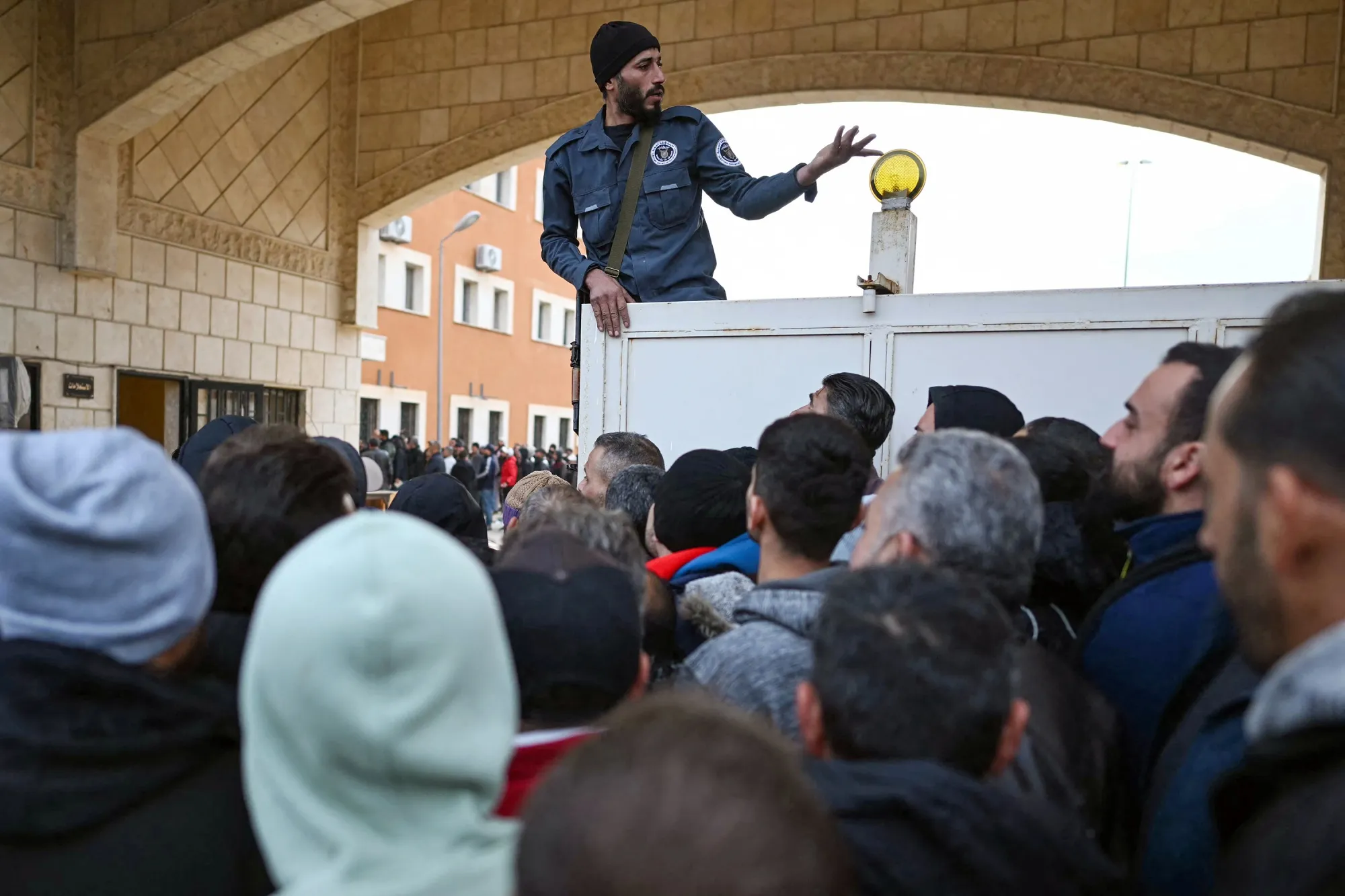 叙利亚士兵、警察和平民在拉塔基亚等待交出武器并向当局登记,时间是12月16日。摄影师:奥赞·科塞/法新社/盖蒂图片社萨利姆在2013年8月时失去了他的兄弟和侄子,当时包括努斯拉阵线在内的伊斯兰激进分子在他的村庄及附近村庄肆虐。几乎200人被杀,超过100人被绑架,至今仍然失踪。