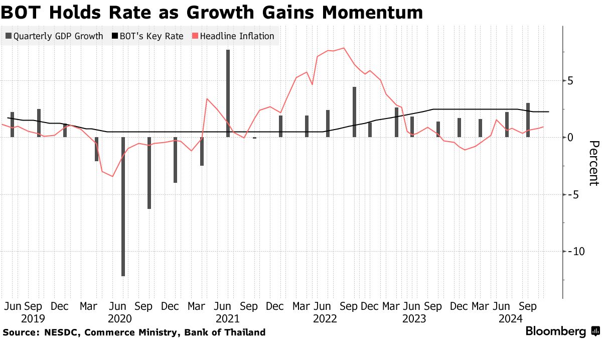 摄影师:Andre Malerba/Bloomberg泰国中央银行在10月意外降息后维持关键利率不变,警告未来不确定性上升,抵制政府进一步放宽政策的呼吁。