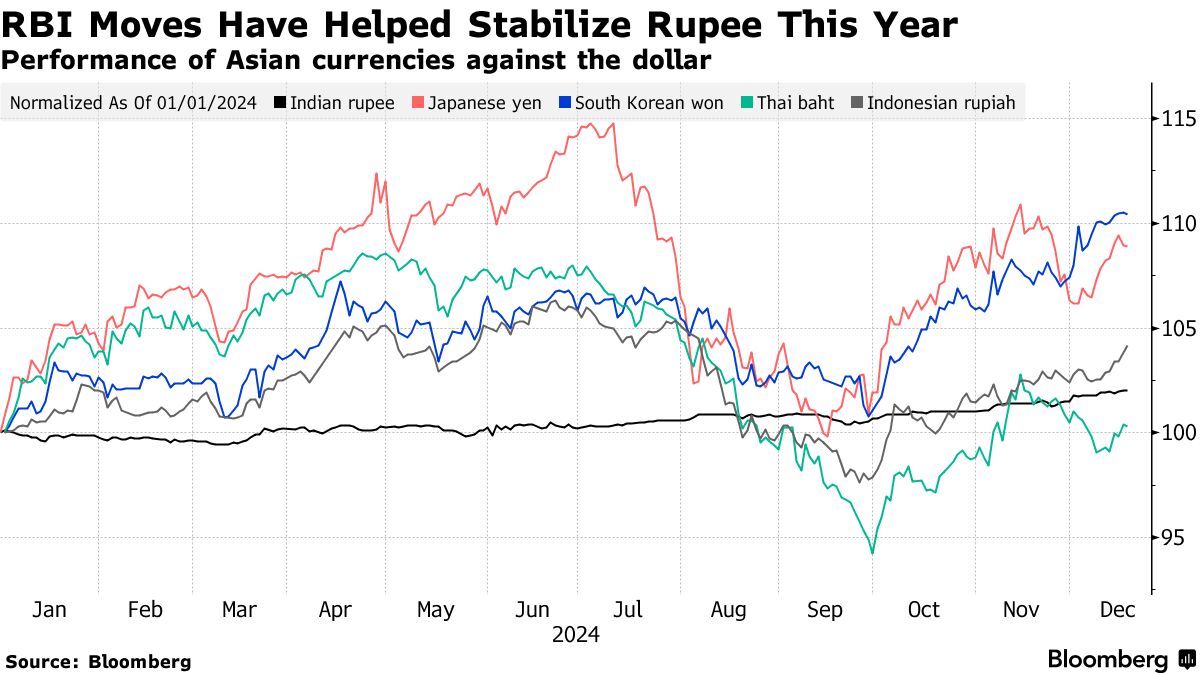 根据彭博编制的数据,卢比在今年对美元下跌约2%后,交易接近历史低点,但仍是亚洲表现最好的货币之一,并且比其同行更为稳定。