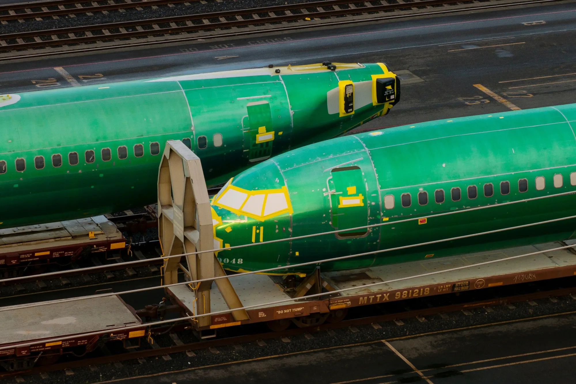 美国西雅图的波音737 Max机身在铁路货车上。摄影师:大卫·赖德/彭博社波音公司表示,在因工人罢工关闭数周后,它已在太平洋西北地区的工厂恢复了所有飞机项目的生产。