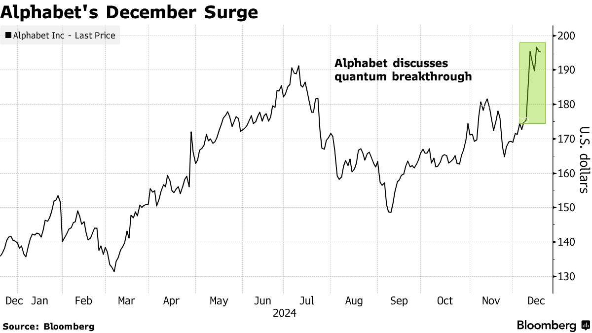 字母表公司在2024年以高昂的姿态结束,量子计算的突破推动了年底的股票反弹,尽管没有近期的商业潜力。