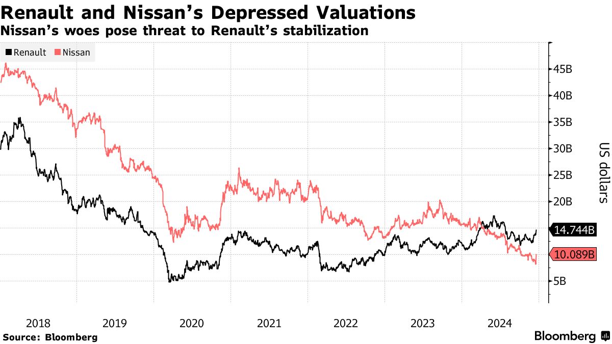 雷诺对日产的持股是其与日产和三菱汽车公司长期联盟的遗留。两家公司在日益加剧的竞争和相互猜疑中部分解散了他们的25年战略伙伴关系。松散的关系为替代合作伙伴关系打开了可能性,即使雷诺和日产继续在印度和拉丁美洲开展联合车辆项目。