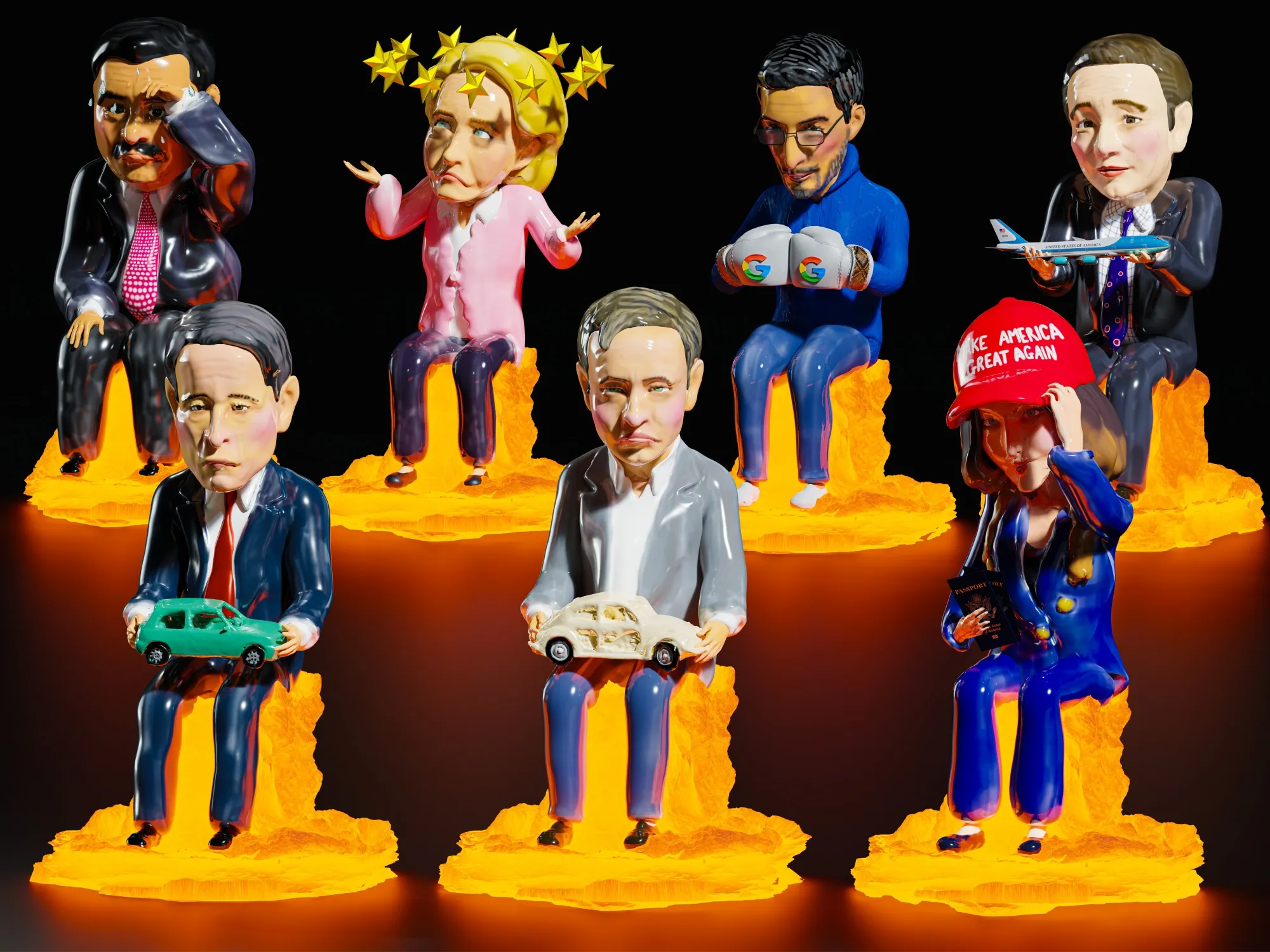 从左上角顺时针方向:高塔姆·阿达尼,乌尔苏拉·冯·德莱恩,桑达尔·皮查伊,凯莉·奥特伯格,克里斯蒂·诺埃姆,奥利弗·布鲁梅和内田诚。