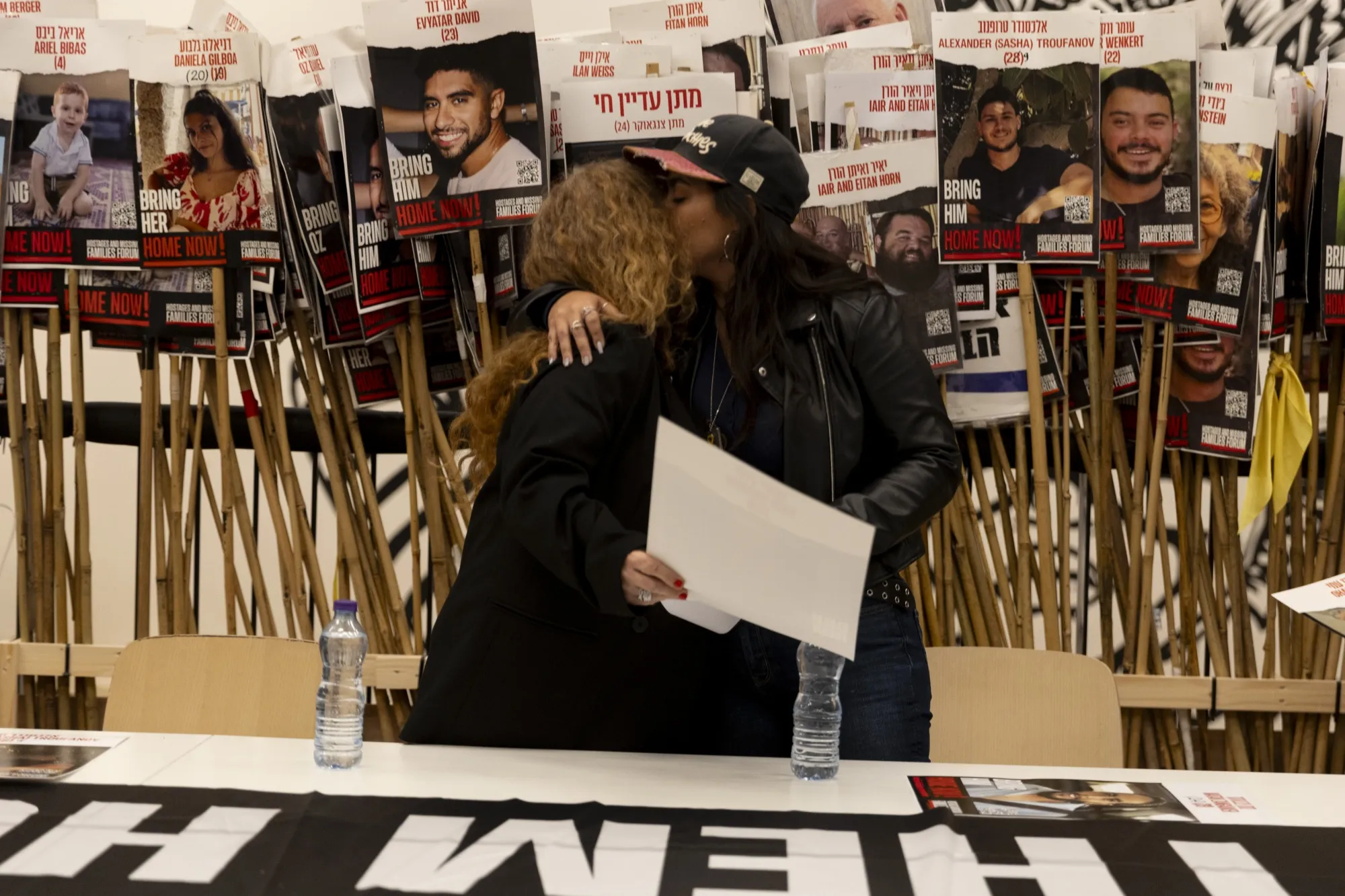 被释放的人质梅拉夫·塔尔和伊拉娜·格里泽夫斯基在2023年12月17日以色列特拉维夫向媒体发表声明。摄影师:阿米尔·莱维/盖蒂图片社“我们看到俄罗斯撤退,伊朗撤退,现在我们处于一个军事战场成功使得在加沙和黎巴嫩的政治进程转变的阶段,”曾在2021-2023年担任拜登政府中东事务副助理国防部长的达娜·斯特劳尔说,现在是华盛顿近东政策研究所的高级研究员。