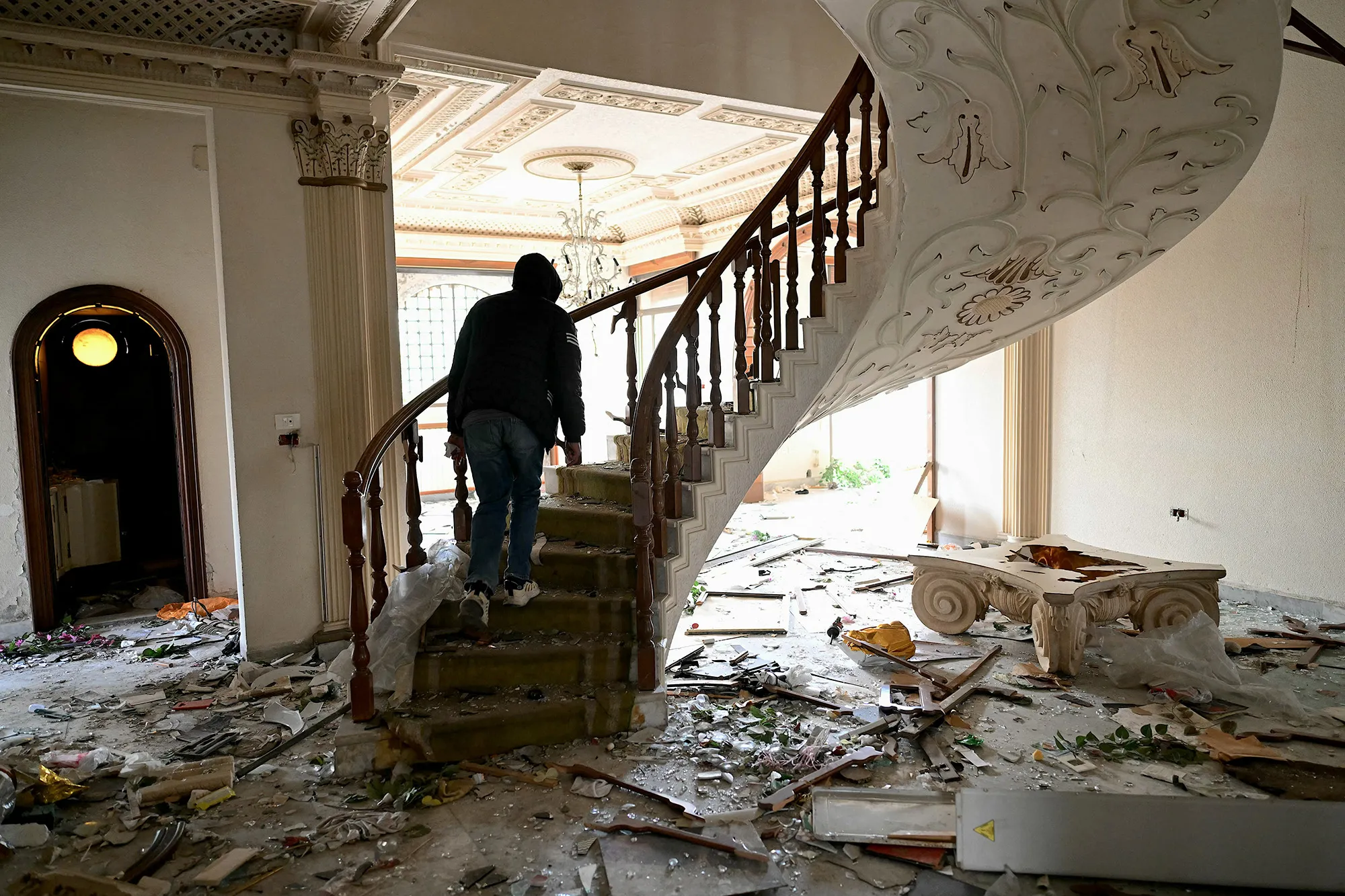 一名男子在叙利亚拉塔基亚巴沙尔·阿萨德亲属的受损房屋内爬楼梯,时间是12月15日。摄影师:奥赞·科斯/法新社/盖蒂图片社在约旦被问及以色列在叙利亚的行动,这些行动激怒了多国阿拉伯国家时,布林肯表示他支持这些行动。在他穿梭于该地区时,也显而易见美国与土耳其的关系也在挣扎,土耳其支持在叙利亚与美国支持的库尔德武装作斗争的民兵,并看守着数千名伊斯兰国的战斗人员。