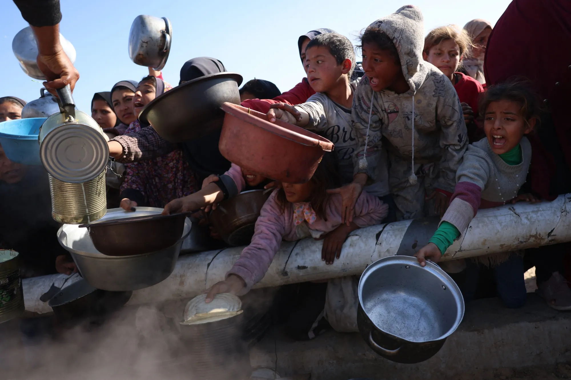 巴勒斯坦人在加沙地带汗尤尼斯附近的分发中心等待食物配给,时间是12月17日。摄影师:巴沙尔·塔勒布/法新社/盖蒂图片社美国还警告以色列数月不要进行黎巴嫩行动,结果却在行动进展超出预期时转而支持。