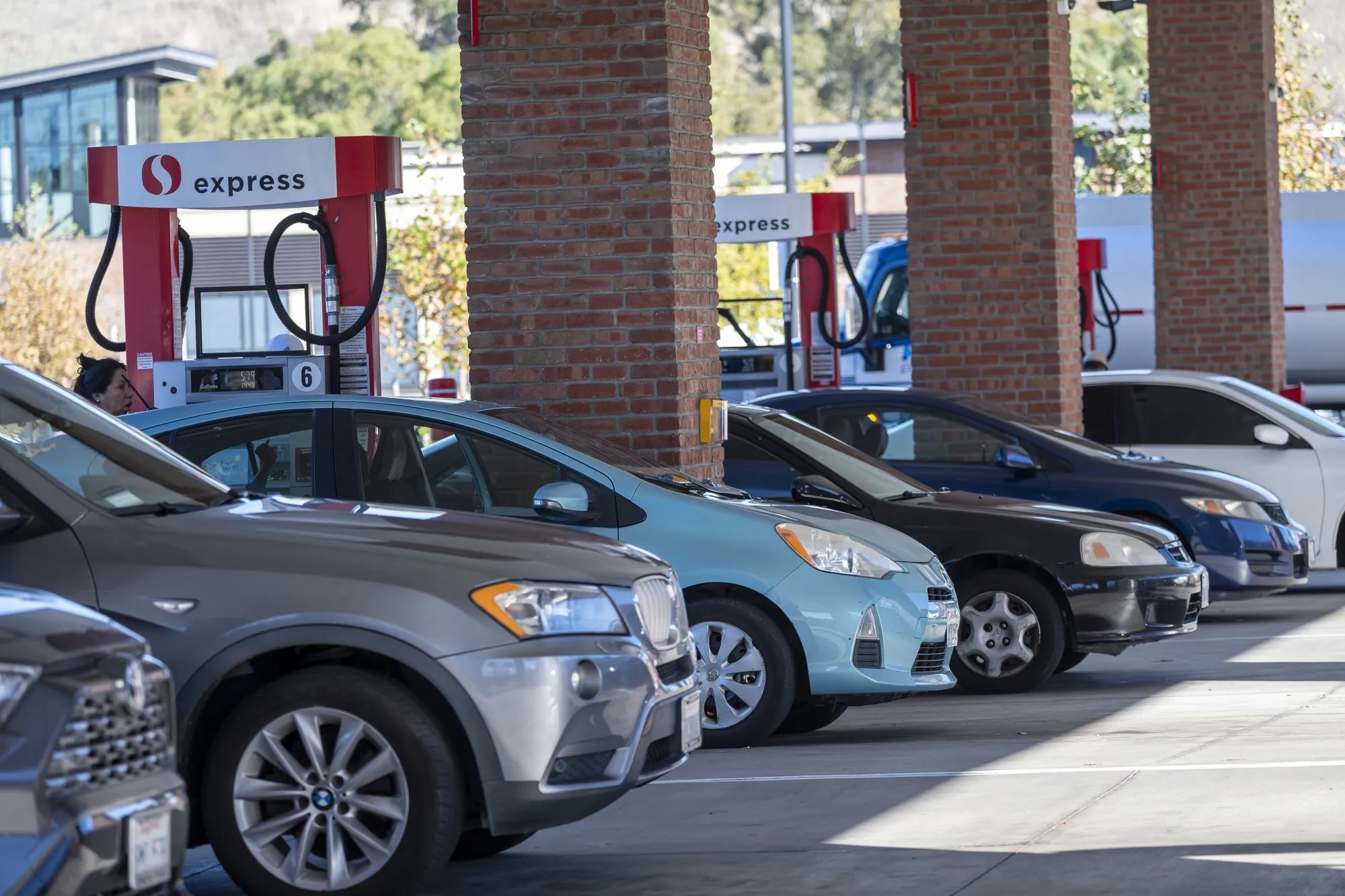 客户在加利福尼亚州赫基尔斯的加油站加油。