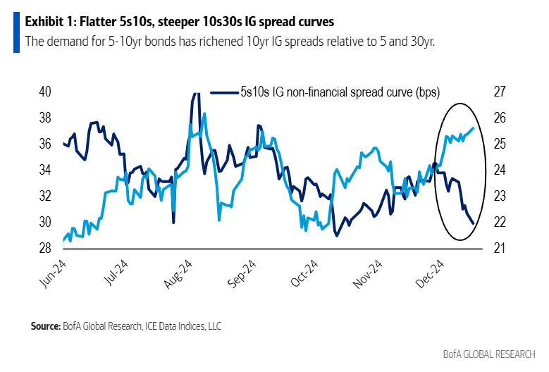 美银美林的分析师上周写道,进入企业债券曲线中段的举动“可能是由于收益率较低,以及投资者在考虑到利差紧缩的情况下采取更防御性的定位。”