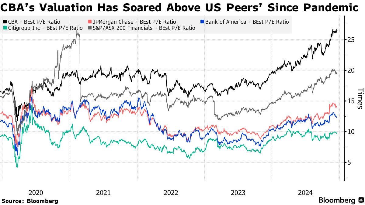 主要股票动态:澳大利亚联邦银行 +43%,西太平洋银行 +44%,国家澳大利亚银行 +24%,澳新银行集团 +13%