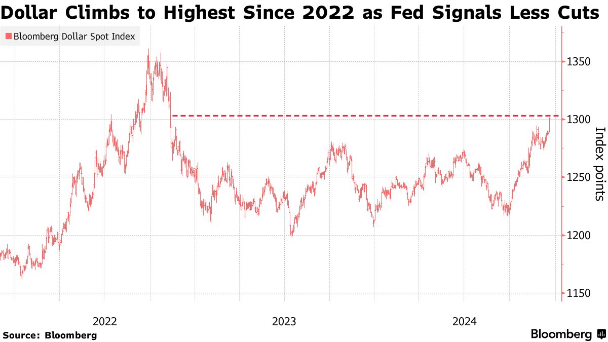 美元:由于美联储预计减少降息,美元升至2022年以来的最高点 - 彭博社