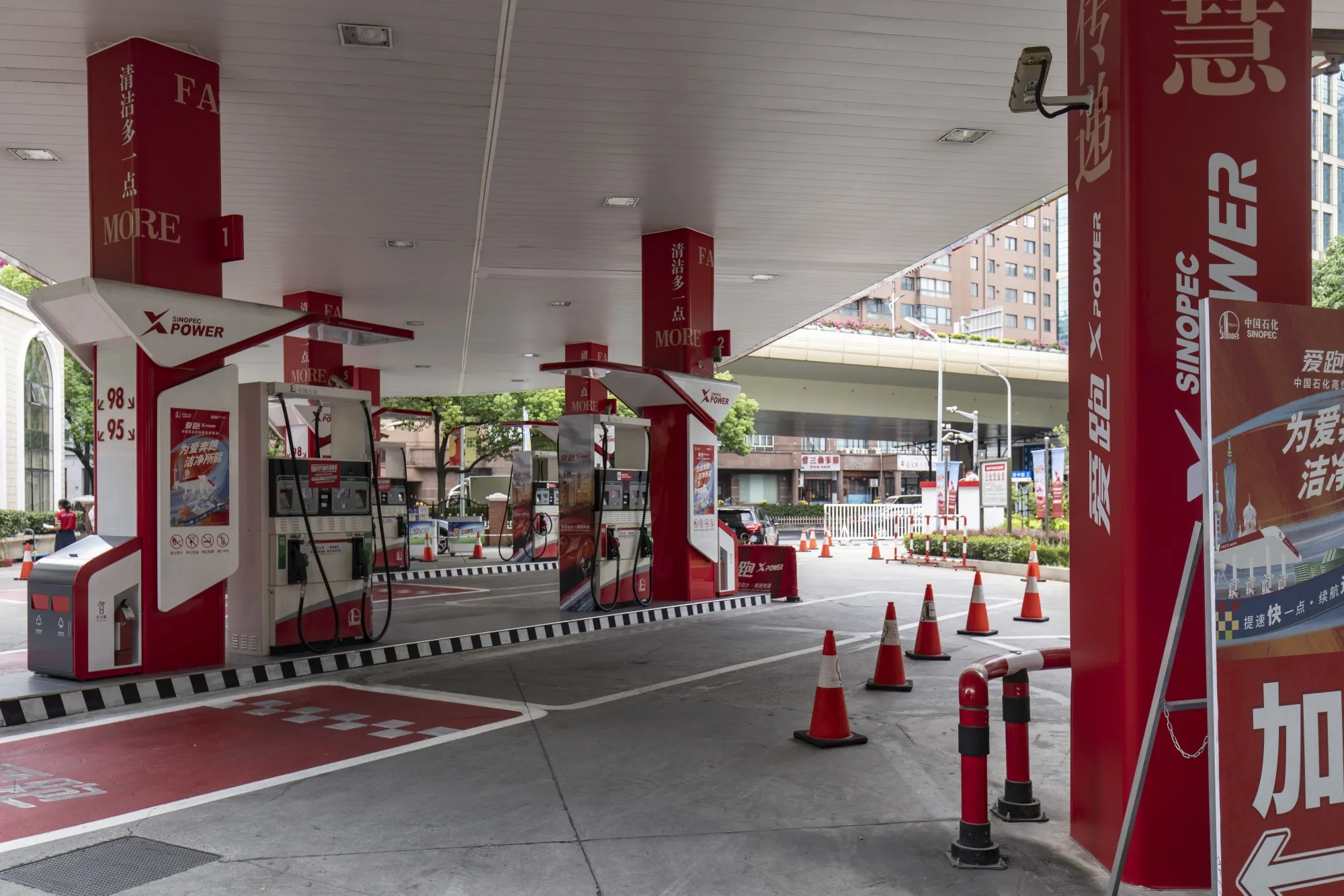 上海的一家中石化加油站。摄影师:沈其来/彭博社中国最大的炼油厂表示,国家的汽油需求在去年已达到峰值,随着电动车的普及,需求下降将加速。