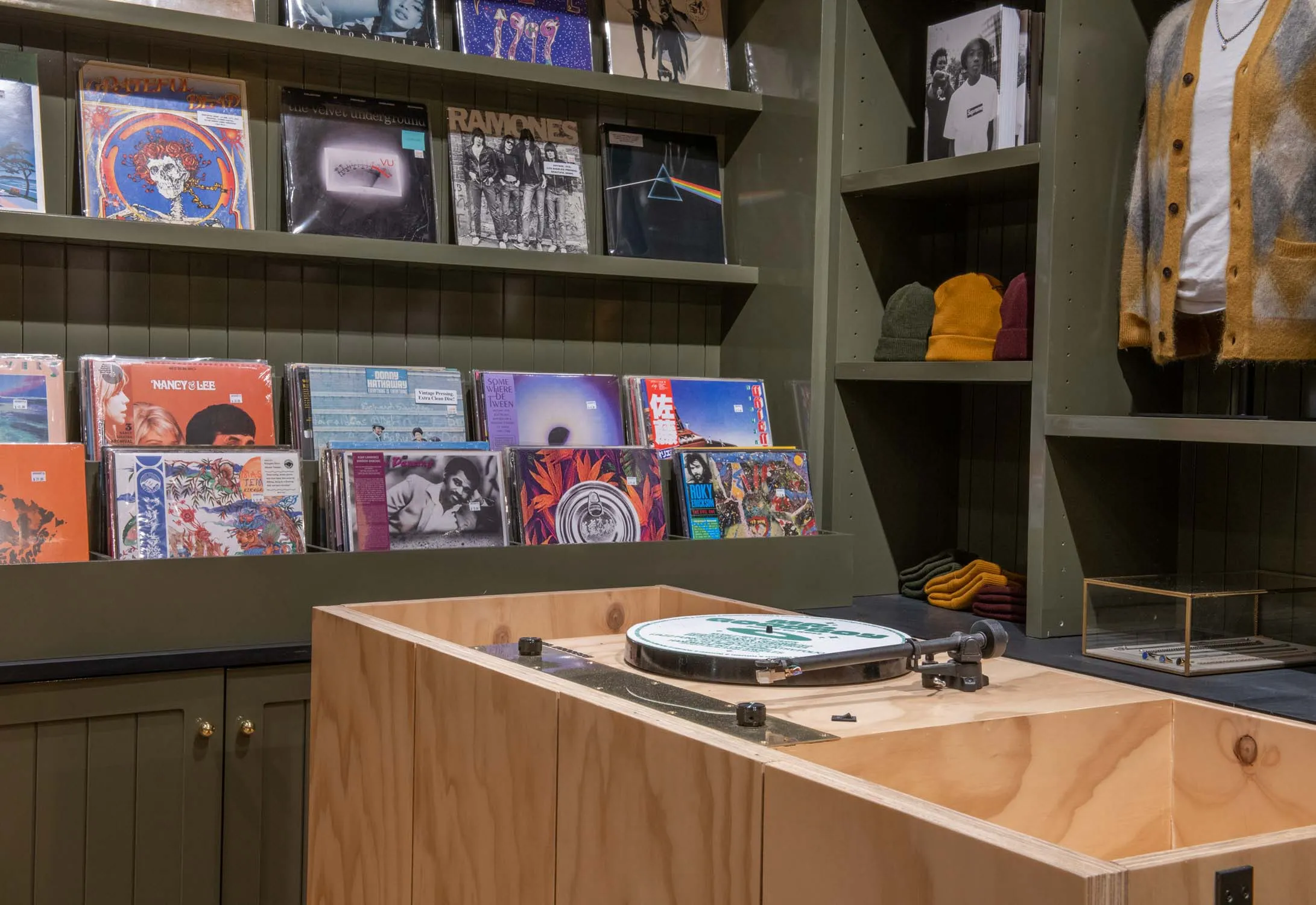 在托德·斯奈德位于加利福尼亚威尼斯的商店中,乙烯基得到了关注。来源:托德·斯奈德获奖时尚设计师比利·里德表示同意。他的同名服装店采取内部策划音乐的方式,通常播放各种新旧、崭露头角和员工最爱的音乐。“我们添加新的播放列表以保持新鲜感,”里德说。“这更多是关于发现或播放一些顾客可能很久没听过的东西。”而且你不会在比利·里德的商店里听到 我所想要的圣诞节就是你:“我爱圣诞节,但我不是圣诞音乐的超级粉丝,”里德说。“让其他人去做吧。”