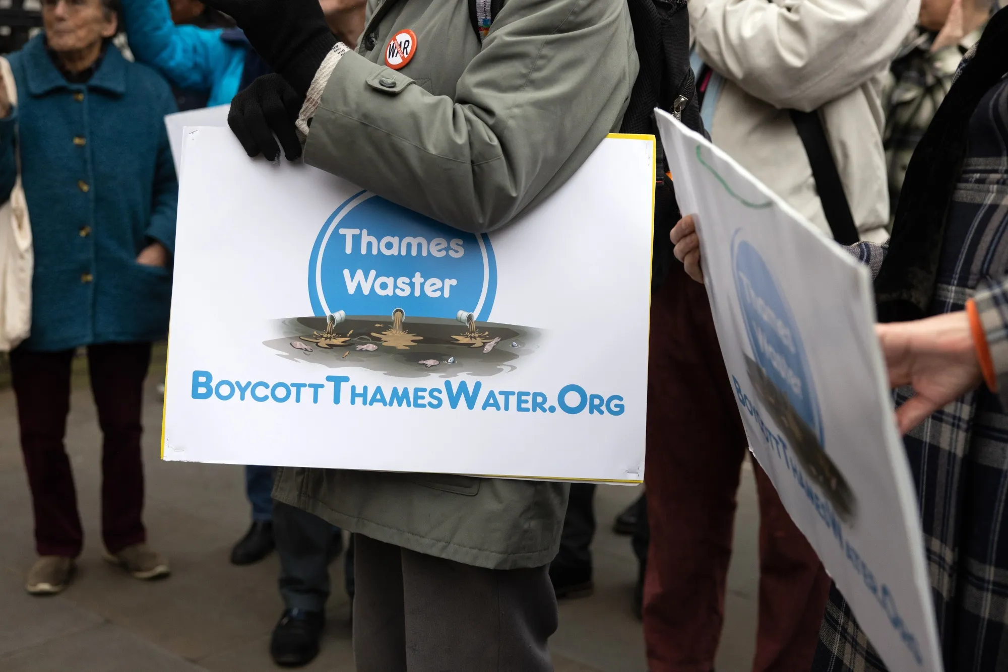 抗议者在12月17日对泰晤士水务的示威活动中。