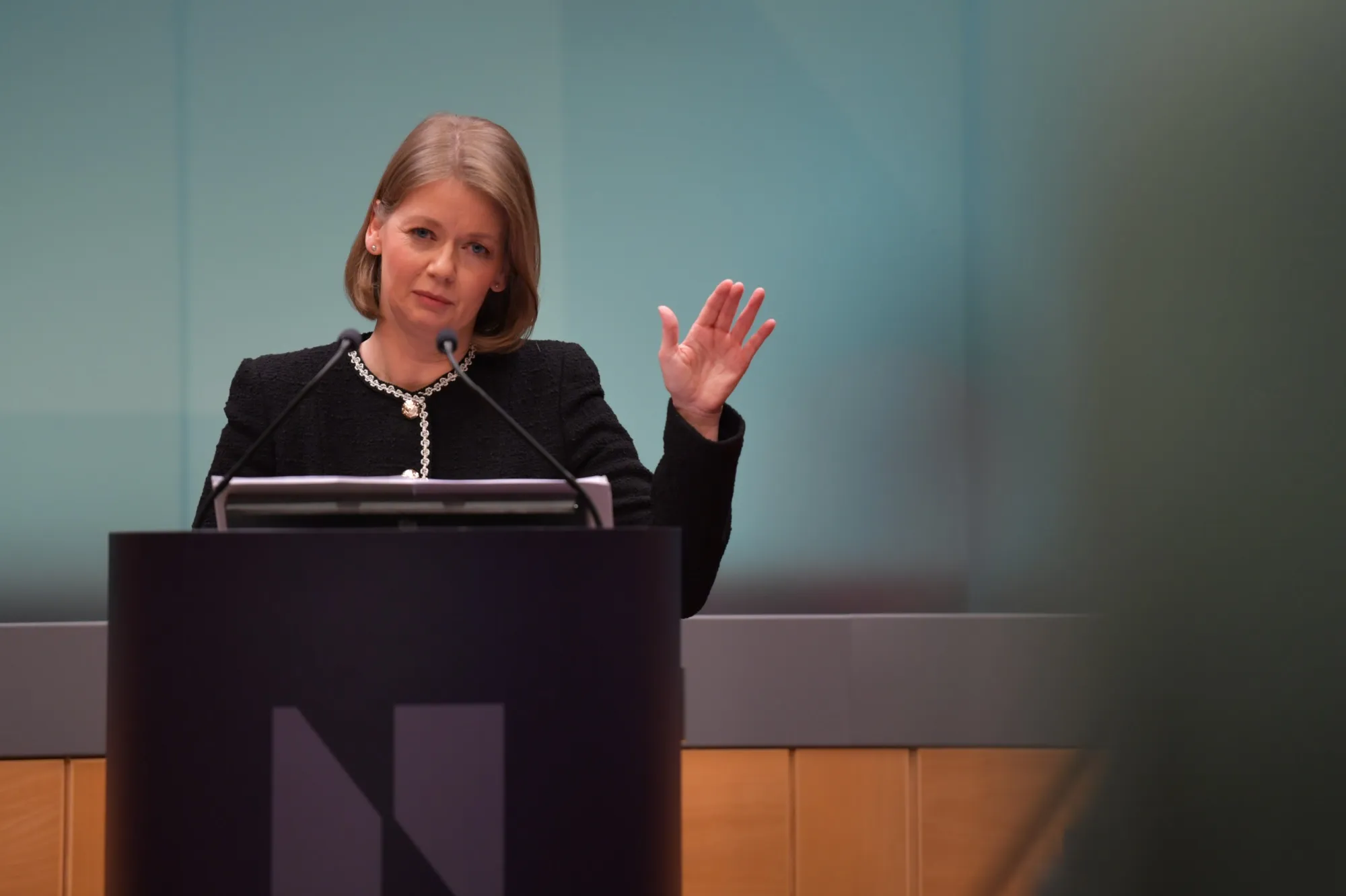 伊达·沃尔登·巴赫在奥斯陆举行的利率新闻发布会上,时间为12月19日。