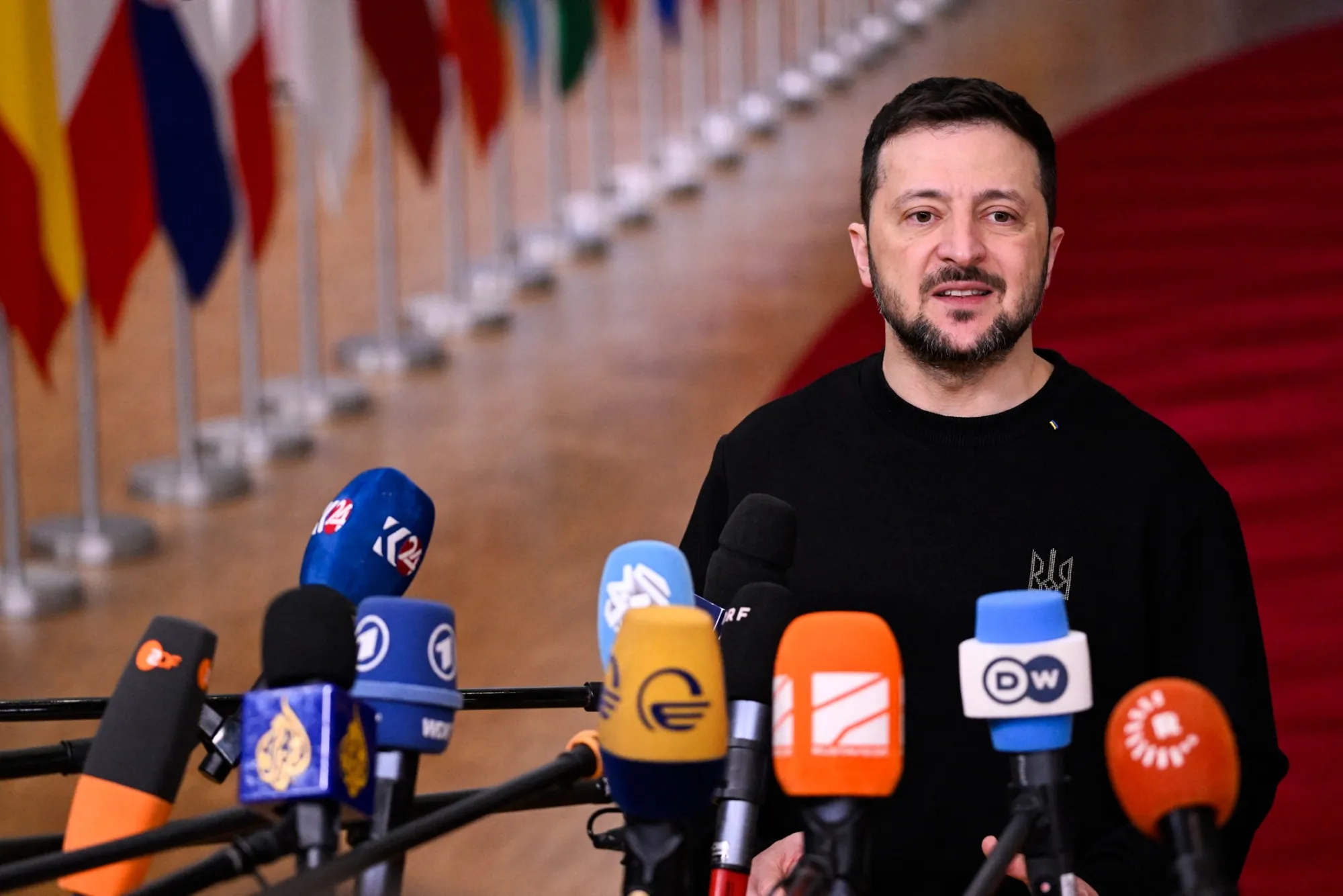 泽伦斯基周三晚在布鲁塞尔会见了北约秘书长马克·鲁特和一群欧洲领导人,讨论在唐纳德·特朗普明年一月重返白宫之前对基辅的支持增加。