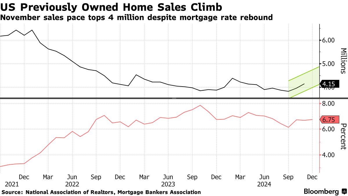 | * 在美国四个地区中,有三个地区的合同关闭数量增加,东北地区的增长幅度达到8.5% * 单户住宅的销售在11月份上升了5%,达到了自3月份以来的最快速度;公寓和合作社的购买量也有所上升 * 个人投资者或第二套房买家购买了13%的房屋,而10月份为17%。全现金交易略有下降 * 首次购房者占购买的30%。全国房地产经纪人协会的年度报告显示,2024年全年这一比例为24%,创历史新低 * 销售额在未经调整的基础上比去年增加了5% |