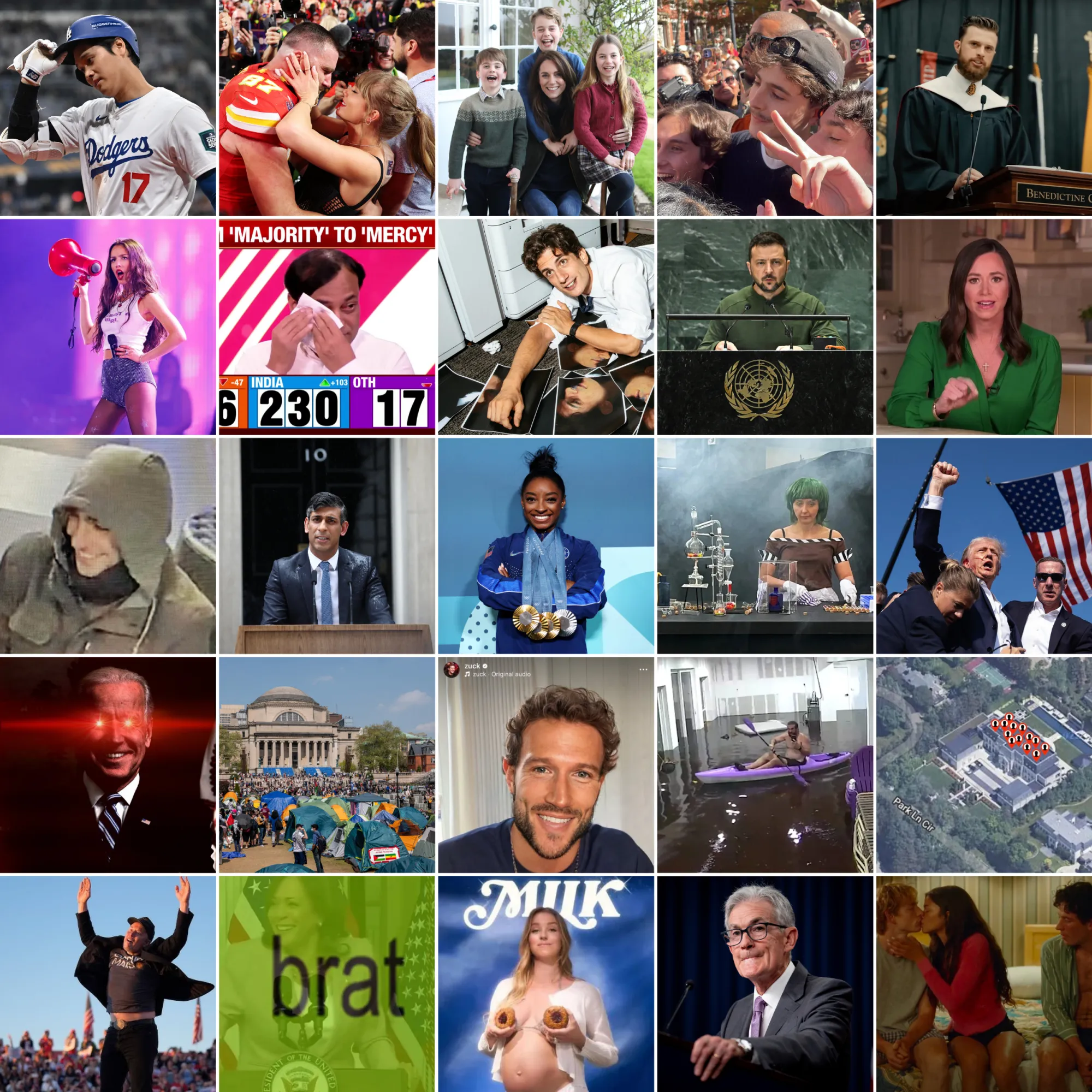 为了庆祝,我借用Evan Ross Katz的一页——你最 喜欢的名人的 最爱名人 评论员——他在每年年底发布 25张铭记于心的图片,引起了极大的轰动。我想彭博社观点的版本会看起来 稍微 不同于他的。(可惜,我无法腾出空间——或者我该说, 留出空间——给“挑战重力,” 那匹黄色的马 或者甚至 Chappell Roan。)实在是太多内容无法挤进去了,在观看 Kyla Scanlon的 详细回顾 美国经济的疯狂一年后,我认为仅仅是杰罗姆·鲍威尔的面部表情就足以填满一个照片网格。