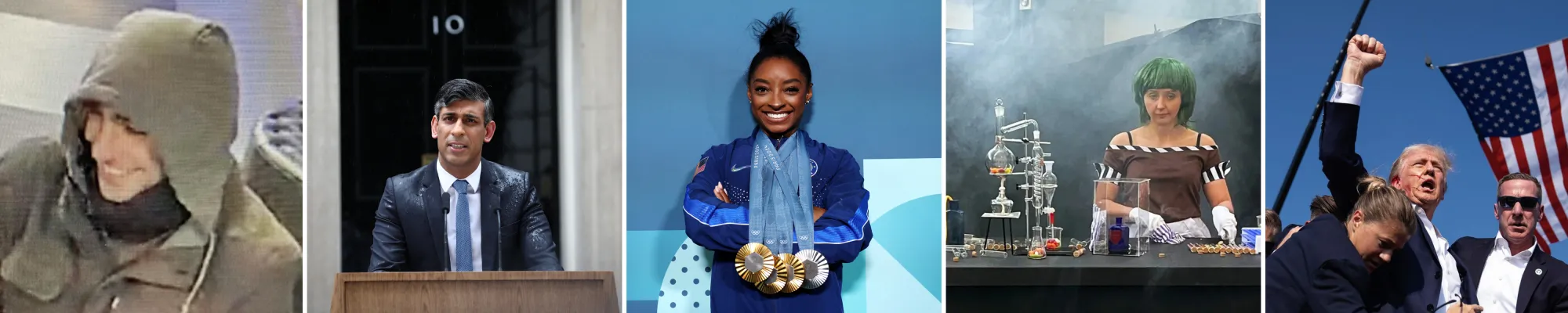 以下图片无需介绍,因为在UnitedHealth的Brian Thompson被谋杀后,它已经在你的社交媒体上出现了两周。大量的文字 — 夹杂着 令人不安的 数量 赞美 — 已经倾泻 在Luigi Mangione身上,令Clive Crook 和许多人感到失望。右边是 一只淹死的老鼠 — 呃,抱歉,Rishi Sunak — 他在10号唐宁街重现了 下水道场景,呼吁进行一次选举,Adrian Wooldridge 表示这标志着 保守党统治的结束。然后是重金奖得主Simone Biles — 在Lisa Jarvis 的话中是“重新定义韧性”的典范。她右边是非常 不韧性 海报儿童/毒品实验室技术员,威利旺卡体验在格拉斯哥,Parmy Olson 表示这无法通过生成性AI拯救。她右边坐着一位满身是血却胜利的特朗普,他在一次集会上被 击中耳朵,这让Tim O’Brien想起了美国的暴力历史。