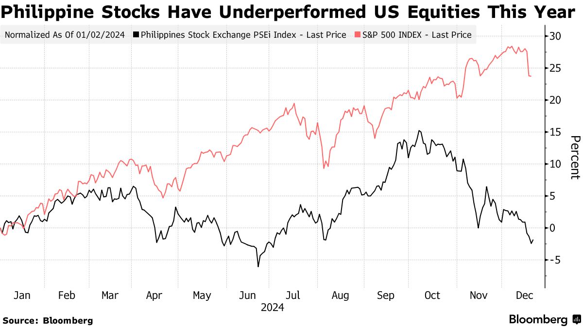 特朗普在11月的选举胜利及其“美国优先”的言论促使一些全球基金削减对菲律宾等新兴市场股票的持有。该亚洲国家的主要股票指数是本季度表现最差的,因比索对飙升的美元下跌超过11%。