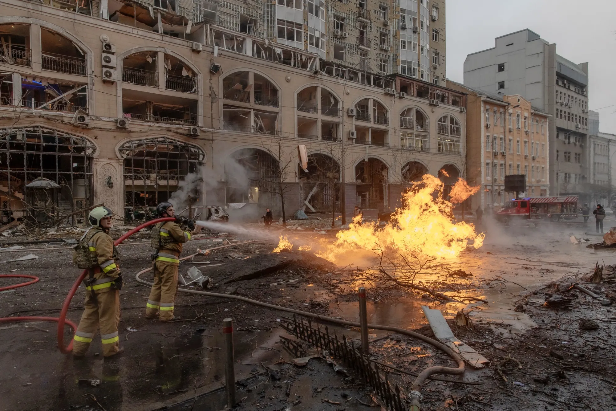 根据乌克兰外交部发言人的说法,袭击损坏了一座容纳多个外国大使馆的建筑,包括阿根廷和葡萄牙的大使馆。没有报告大使馆员工的伤亡情况。此次袭击引发了欧盟外交政策负责人卡贾·卡拉斯的愤慨。