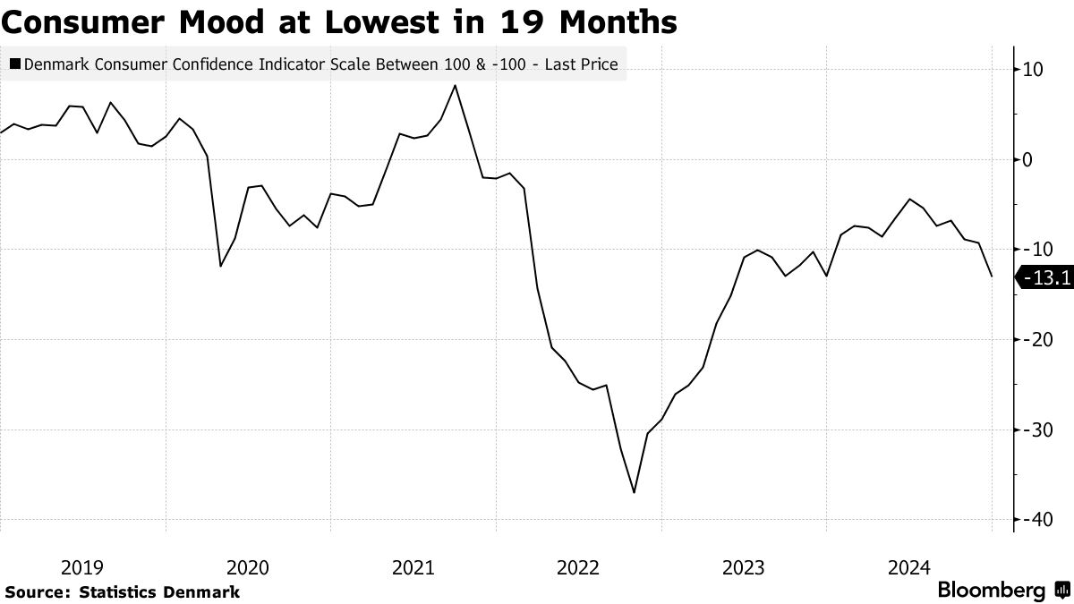 丹麦人无视诺和诺德的提振,消费者情绪降至19个月低点 - 彭博社