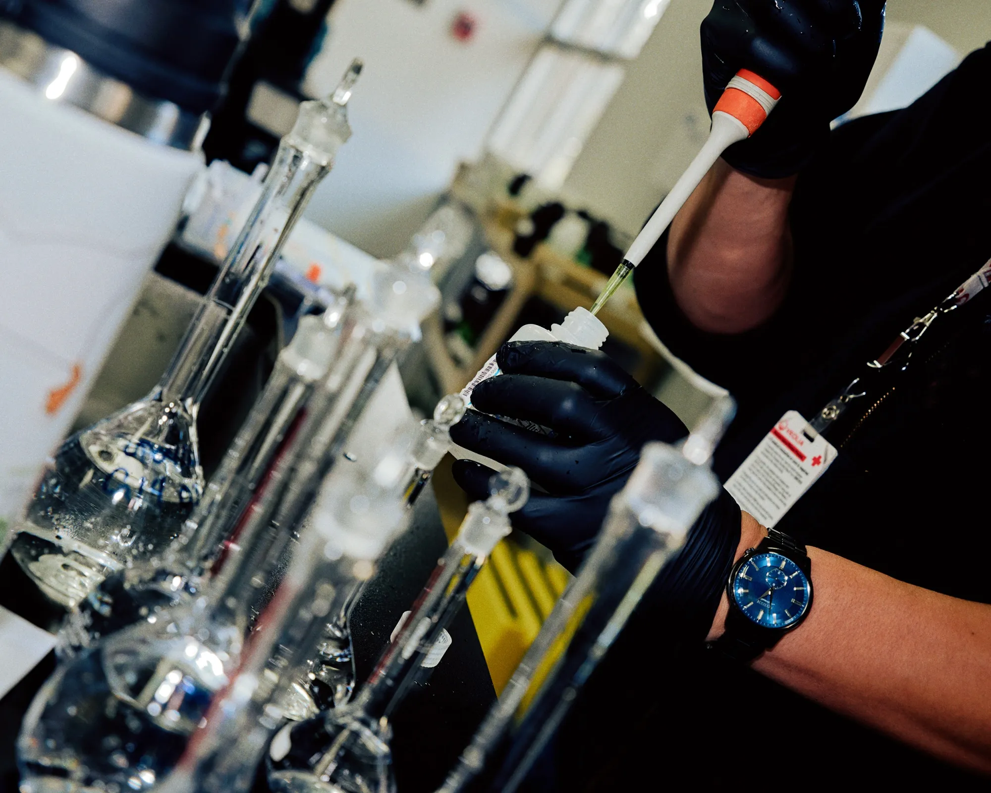 一名员工在维奥利亚北美的实验室测试水样。摄影师:大卫·卡布雷拉/彭博社