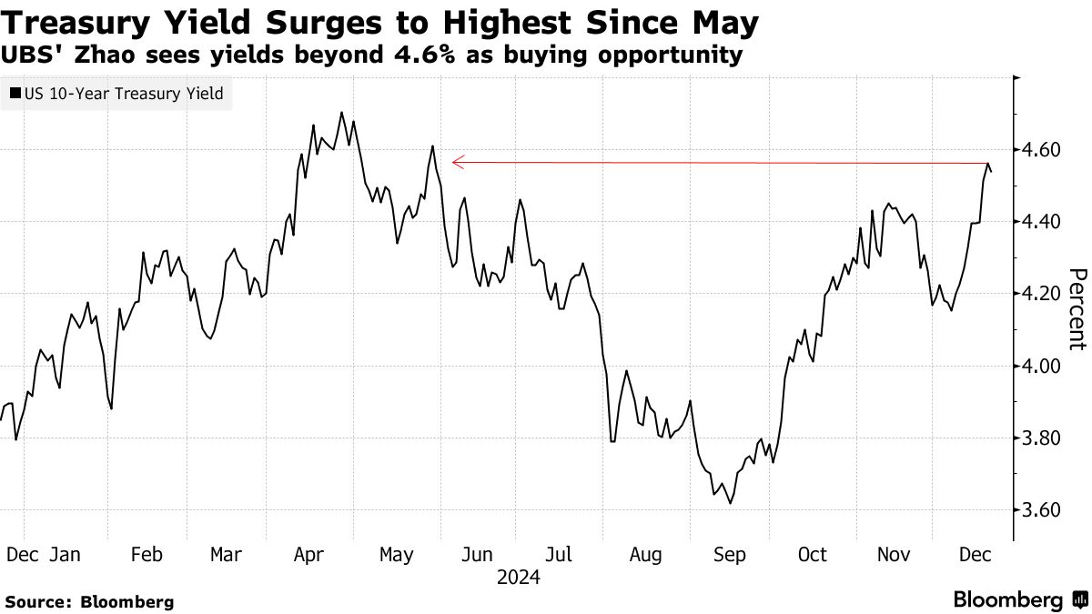 赵是一个基金池中的一员,他们因潜在贸易限制对美国经济的风险而关注国债。他们与更广泛的市场相悖,投资者本周抛售国债,导致收益率升至自五月以来的最高水平,此前美联储对2025年降息表示谨慎。