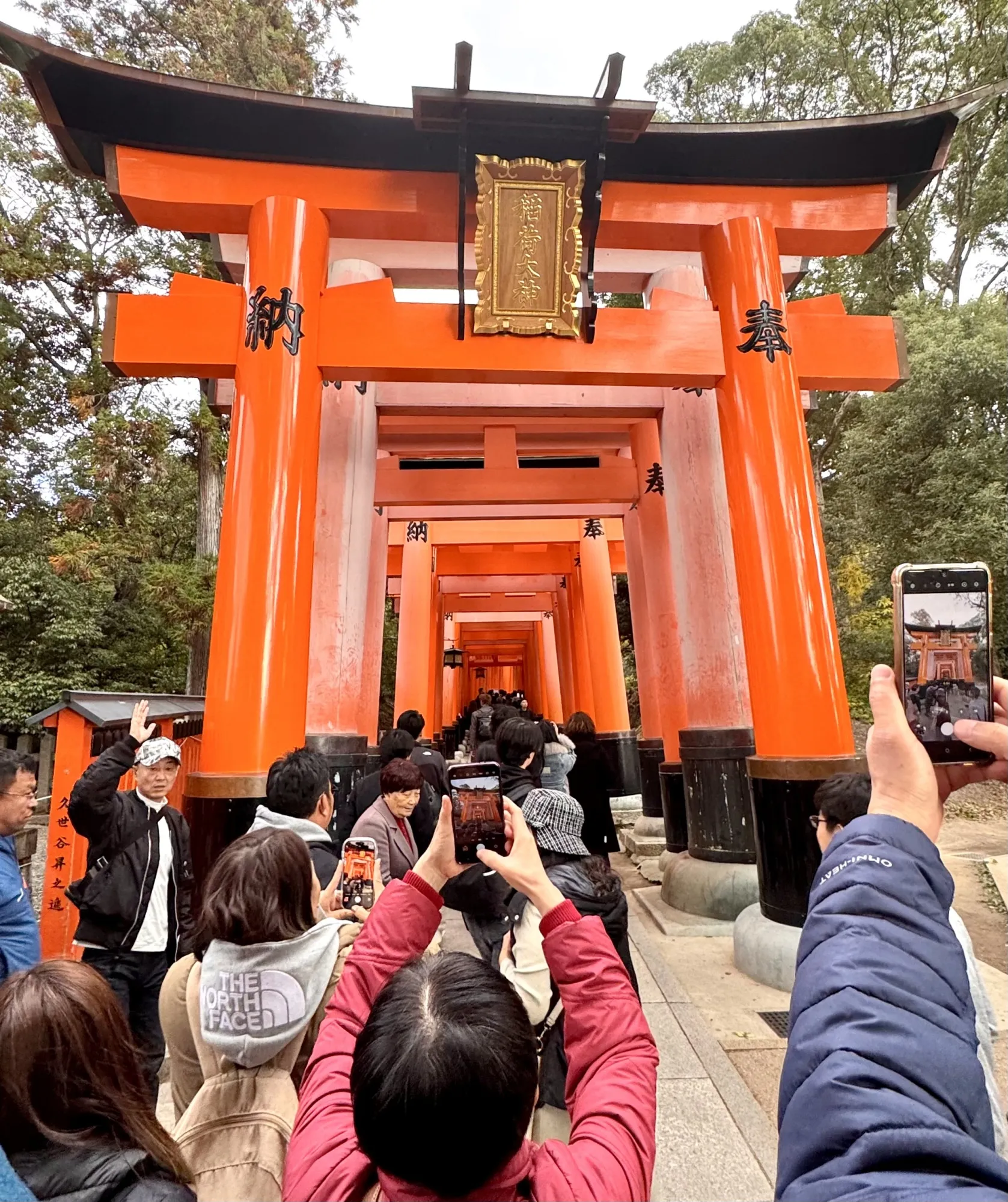 这份通讯的常规读者可能知道我对 伦敦的狐狸 着迷。因此,当我在日本时,我必须去参观著名的伏见稻荷大社,那里有1万扇鲜红的神社门或 鸟居。 游客成千上万(在大型假期时达到数百万)前来拍摄必备的纪念照片,并穿过鸟居,这些鸟居框住了京都丘陵地区的狭窄小径。