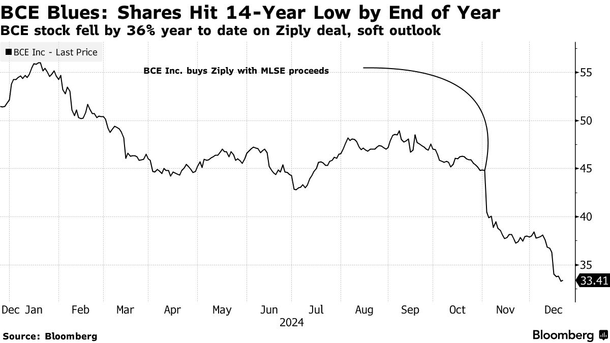 BCE的股票在11月4日公告后 下跌 至12年来的最低水平。