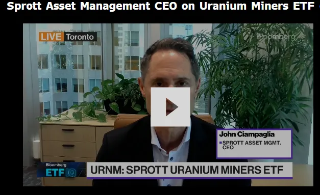 在本周的彭博电视台ETF IQ的深入分析中,Sprott资产管理公司首席执行官约翰·恰姆帕利亚与我们一起讨论了15亿美元的Sprott铀矿工ETF(代码:URNM)。该基金投资于参与铀的开采、勘探、开发和生产的公司。其最大持股之一是一个实物铀信托,因此URNM不仅对基础商品有敞口,还对矿业公司有敞口。