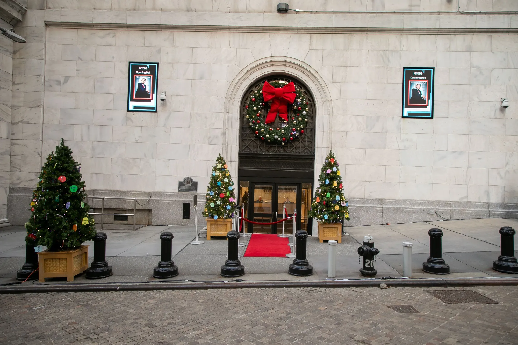 显示器展示了美国当选总统唐纳德·特朗普作为《时代》杂志“年度人物”的图像,地点在纽约证券交易所(NYSE),时间为12月12日