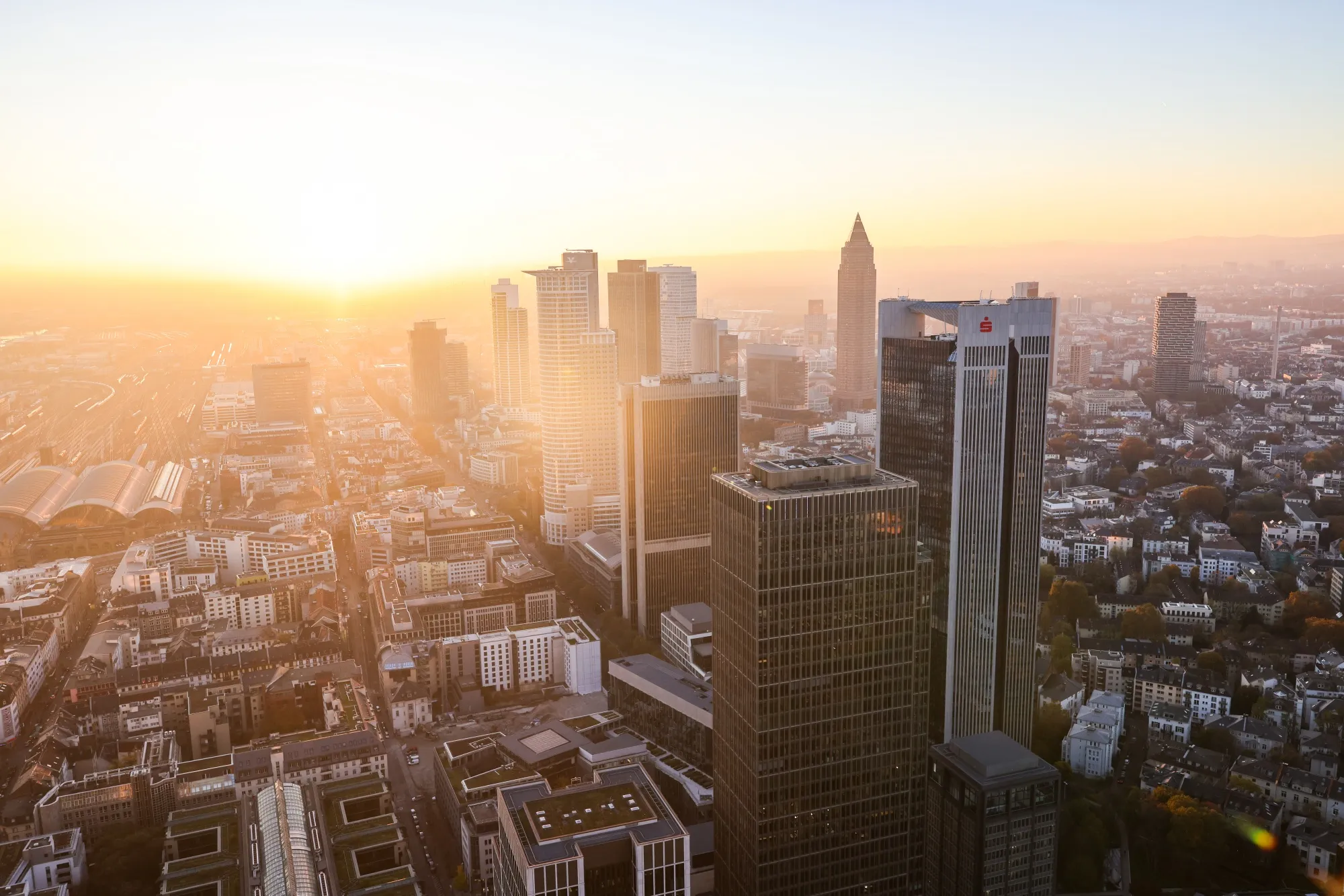 德国法兰克福的金融区。摄影师:亚历克斯·克劳斯/彭博社根据彭博社的调查,欧元区经济明年的增长势头将低于之前的预期,仅比2024年略微强劲。