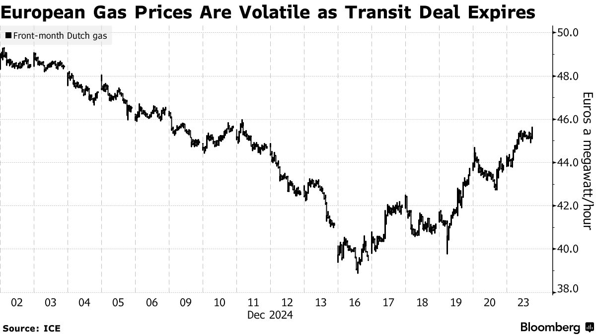 欧洲天然气波动,过境协议到期的时间在逼近 - 彭博社