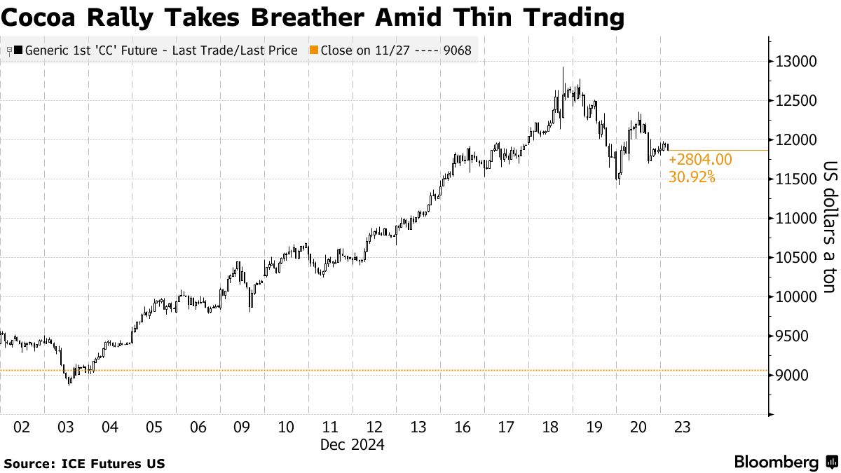 可可价格因创纪录的涨幅引发获利了结,交易清淡 - 彭博社