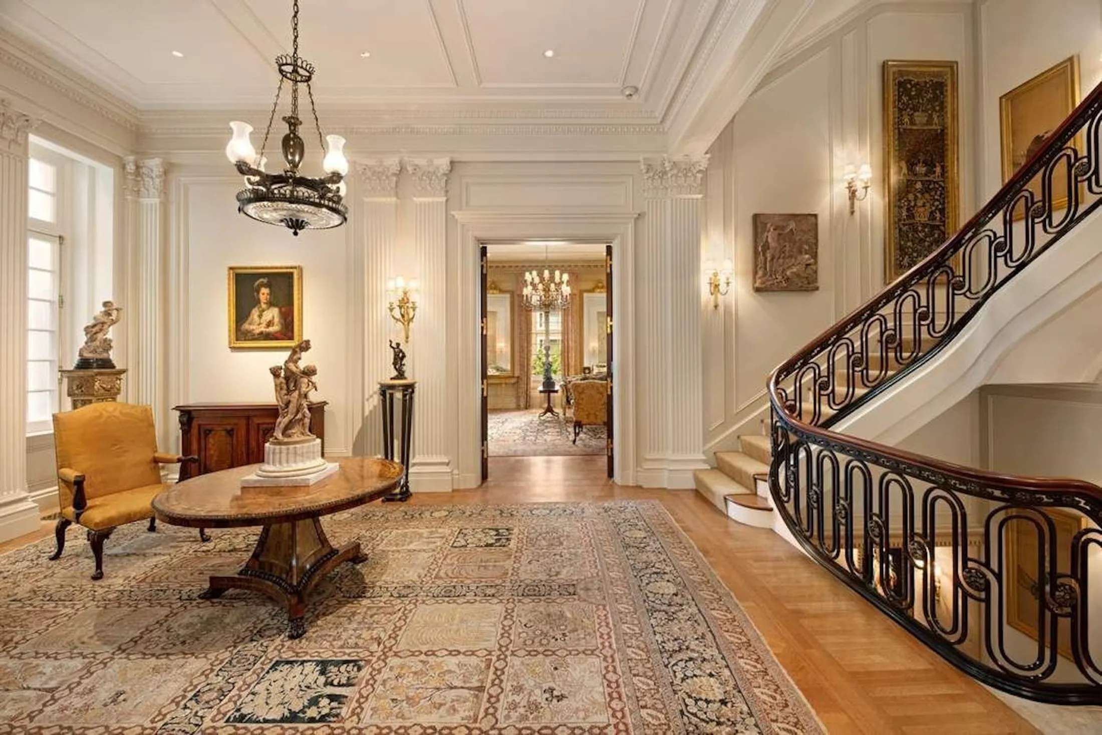 4 E. 79th St. 的宏伟楼梯。来源:Zillow4 E. 79th St.: 5600万美元****背景故事: 绝对是今年名单上规模最大的交易(超过15000平方英尺!),这座巨大的22间房间的联排别墅距离中央公园仅几步之遥。建于1898年,宽达35英尺,这座房屋最近进行了翻新,包含电梯、户外空间、高天花板和六间卧室。根据上市文件,其最初的要价为6500万美元。