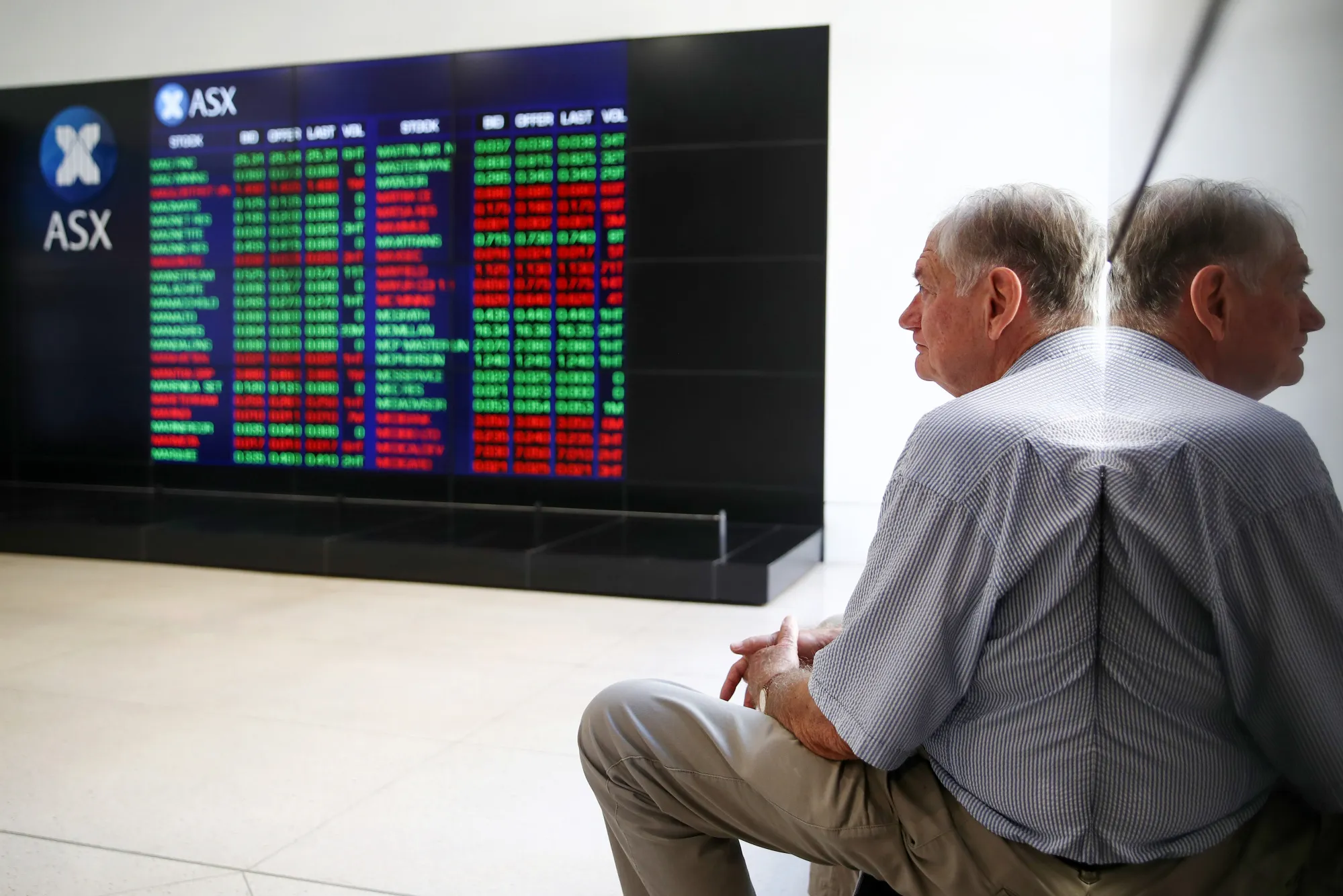 一名男子正在查看澳大利亚证券交易所显示的股市信息