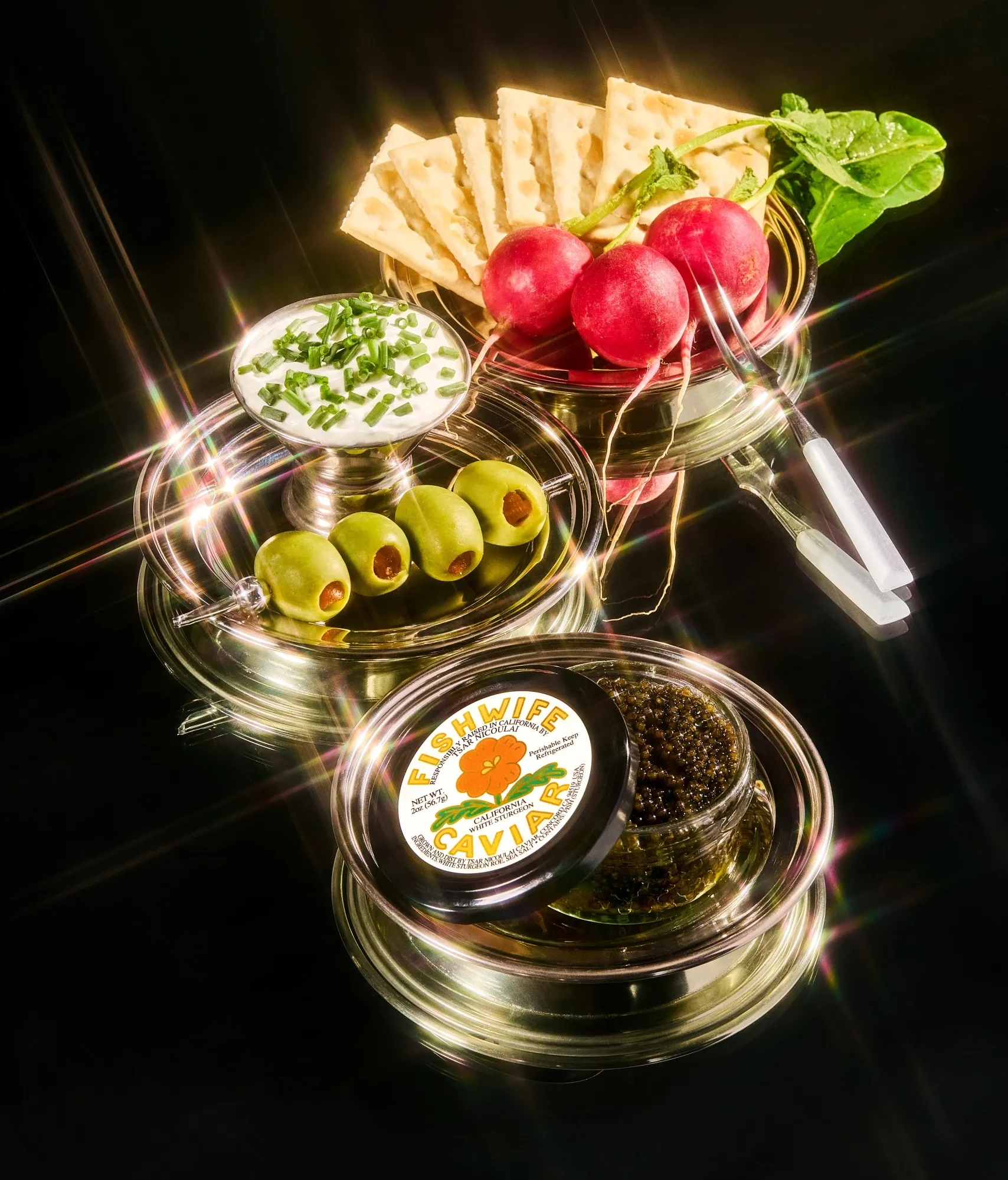 为了一个沙发鱼子酱之夜,考虑Fishwife的首发产品。来源:Fishwife### 适合Netflix之夜