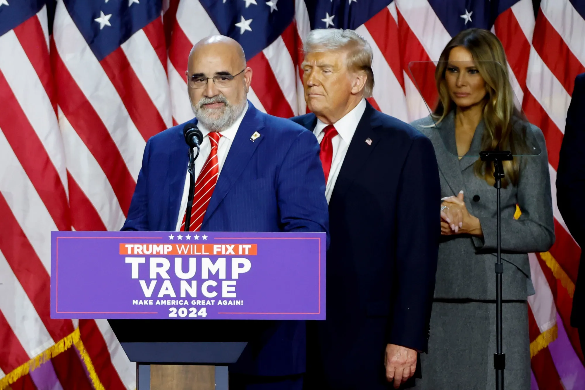 克里斯·拉西维塔,左侧,与唐纳德·特朗普和梅拉尼娅·特朗普在佛罗里达州西棕榈滩的选举之夜活动上。