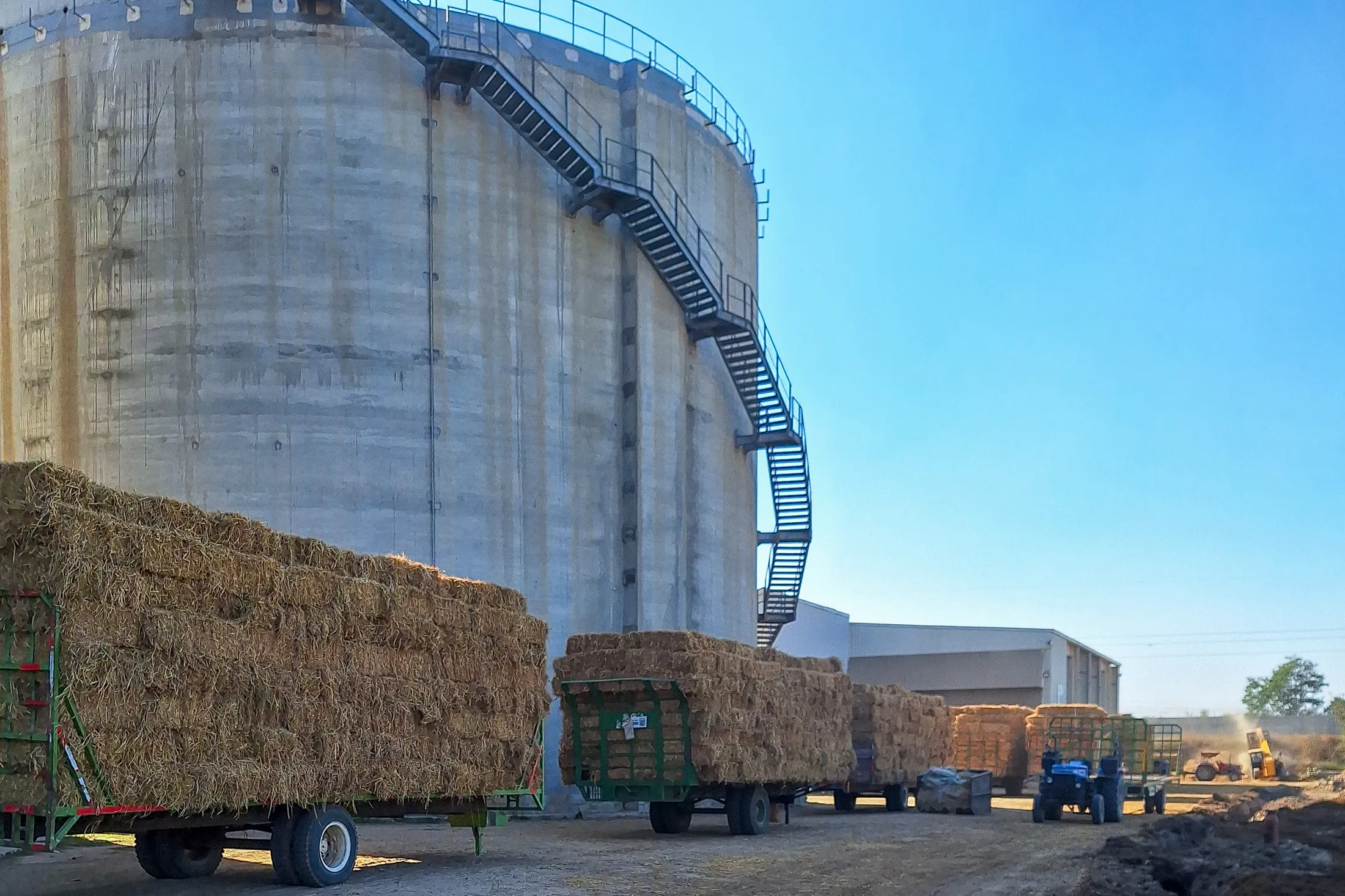 由于农业周期时间紧迫,工厂操作员也只有几周的时间来收集支撑他们全年生存的秸秆。这些秸秆储存在覆盖着大型防水布的堆垛中,点缀在风景中。