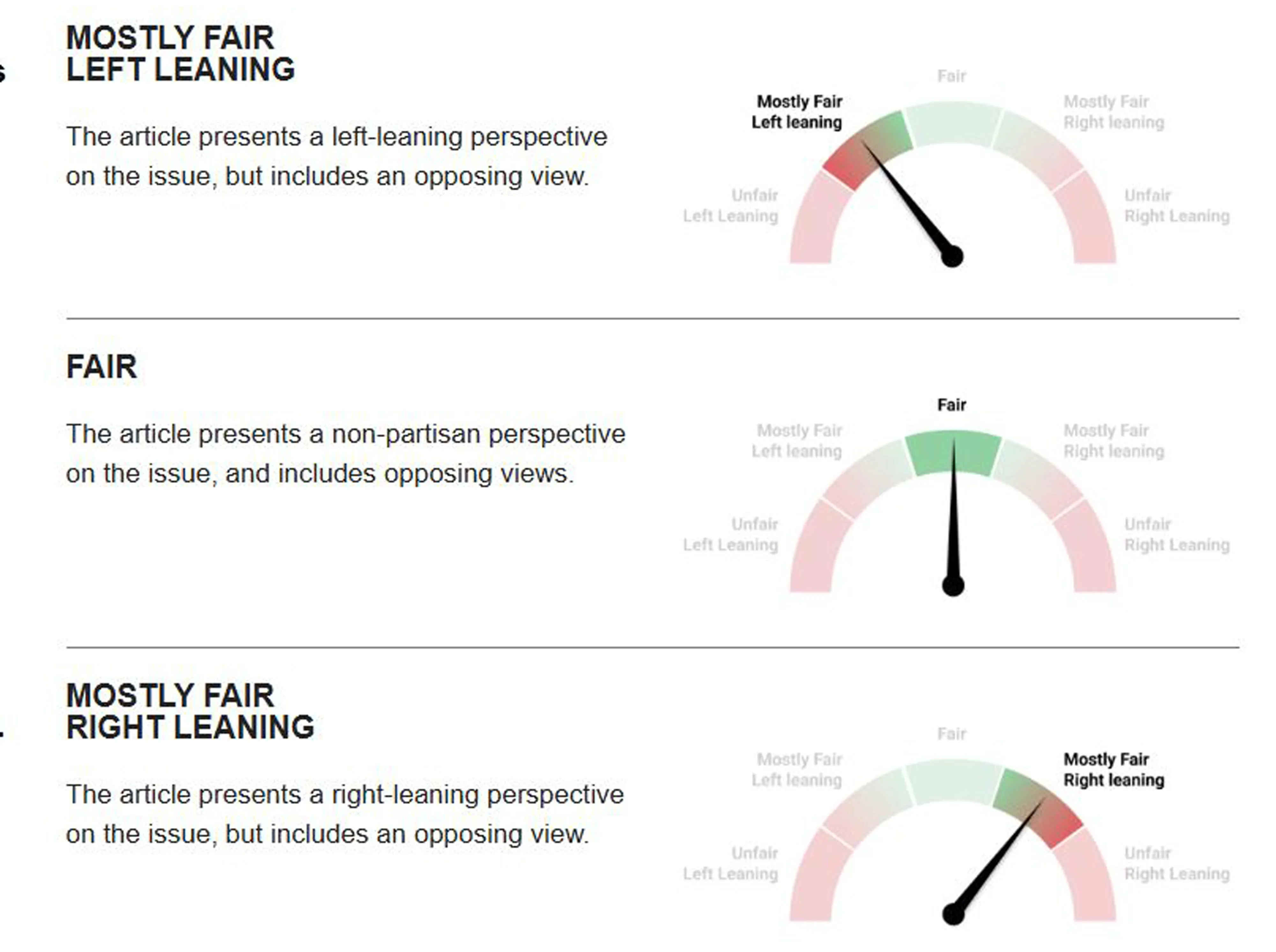该计量器出现在大多数新闻机构的故事末尾,让读者有机会根据五个潜在选项决定文章是否存在偏见,包括不公平/偏左、公平或不公平/偏右。