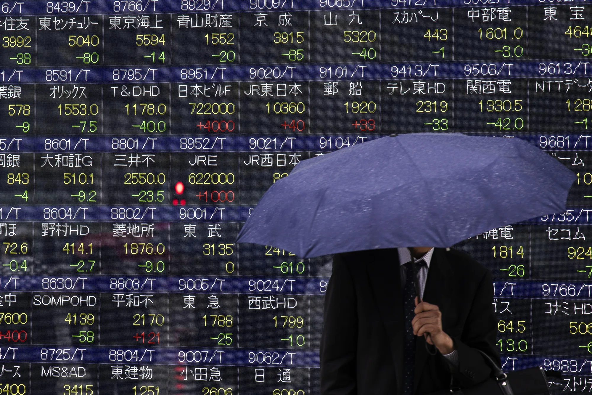 一名手持雨伞的行人在日本东京一家证券公司的电子股价板前。照片:Keith Bedford/Bloomberg科技股的反弹支撑了市场,在圣诞节假期前的一个平静交易日。