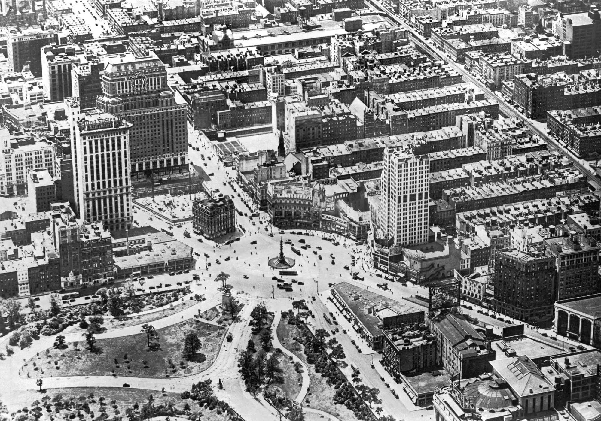 1924年1月7日,费尔柴尔德航空摄影公司拍摄的哥伦布圆环的斜视图。