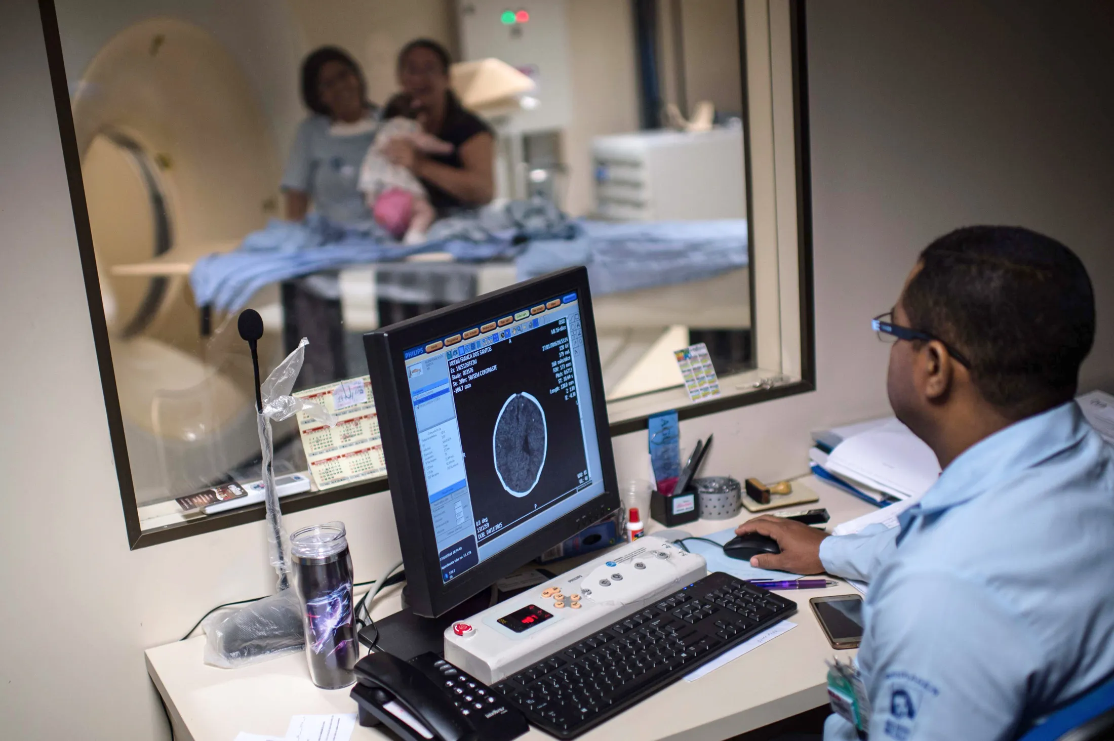 一名医生在巴西萨尔瓦多的一家医院为新生儿扫描大脑,以检测可能的小头症,时间是2016年。摄影师:Christophe Simon/AFP/Getty Images尼尔森出生于一位丹麦父亲和一位巴西母亲,在里约热内卢上医学院,职业生涯的大部分时间致力于研究母体感染(如HIV和寨卡病毒)对儿童健康的影响。