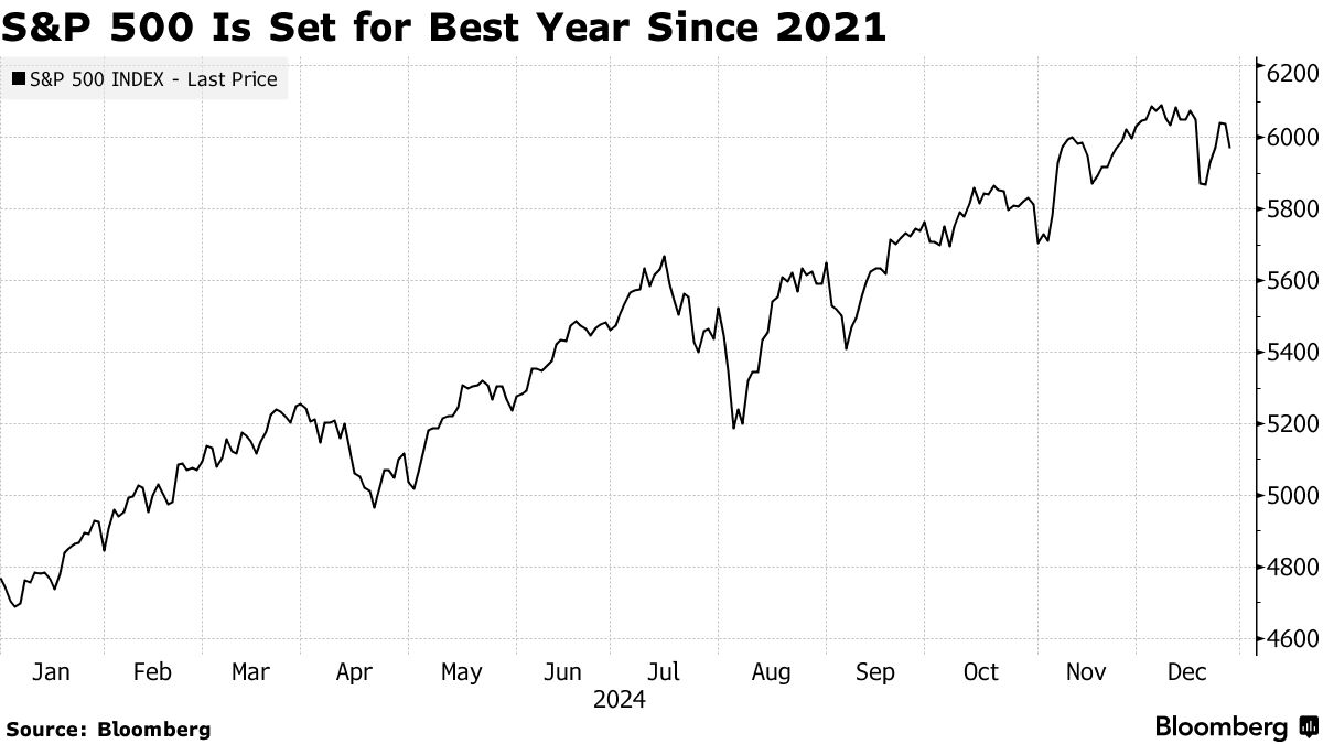 在另一个交易量稀薄的交易日——这往往会放大波动——S&P 500下跌了1.1%,而纳斯达克100下滑了1.4%。尽管每个主要行业都屈服于周五的下滑,但科技巨头承受了抛售的重压。这是在经历了一波猛烈的上涨后,该集团被称为“七大奇迹”,占据了2024年美国股市基准收益的一半以上。